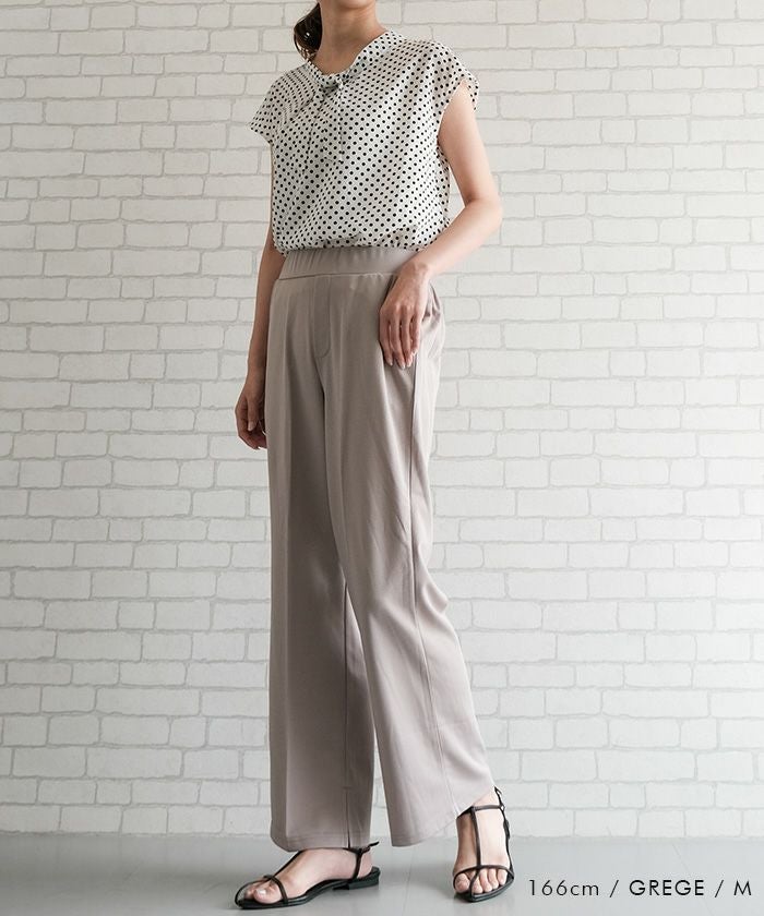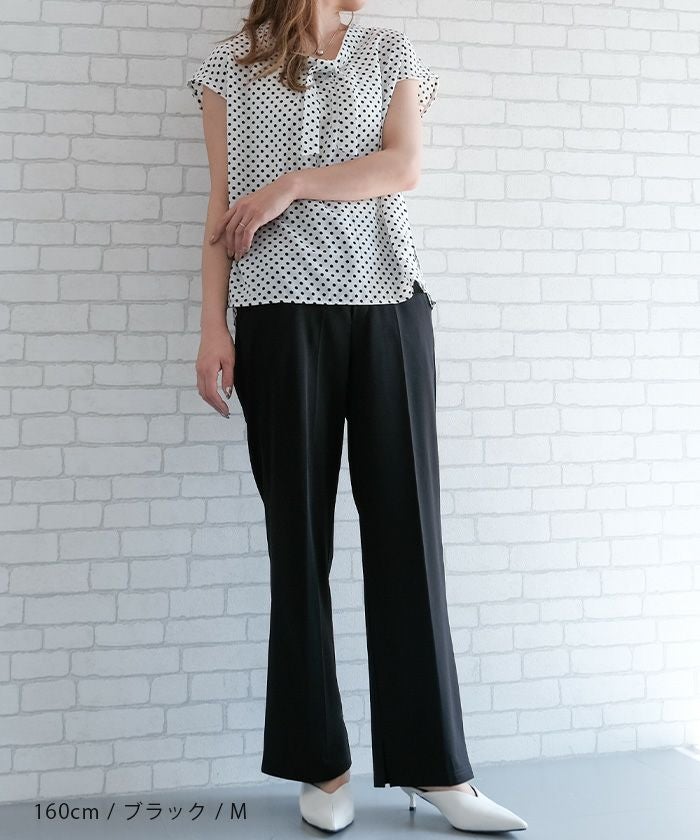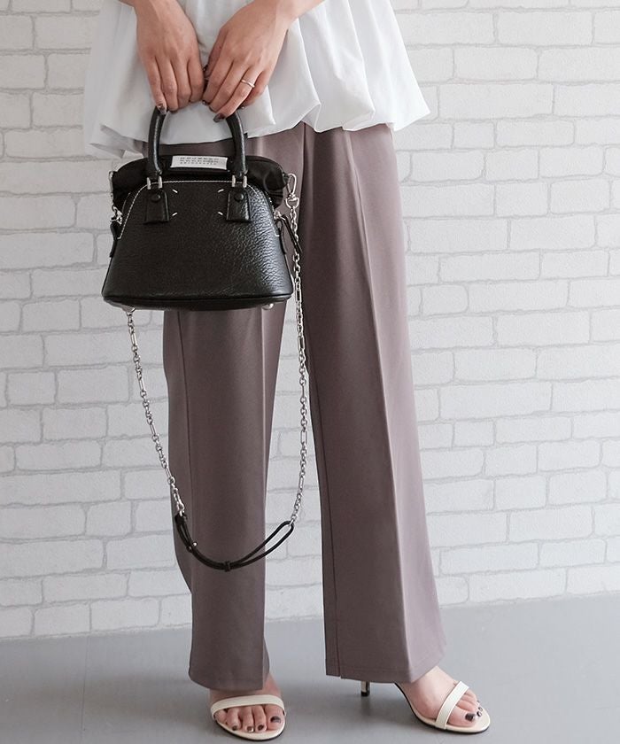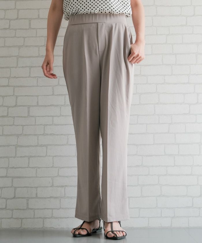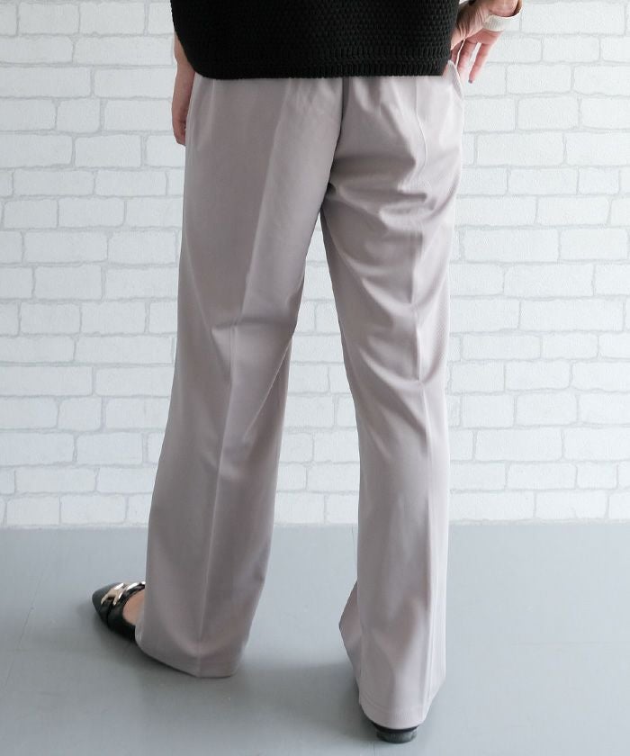 ゆったりとしたシルエットながら、センタープレスの効果で縦ラインを強調し、美脚効果もばっちり。