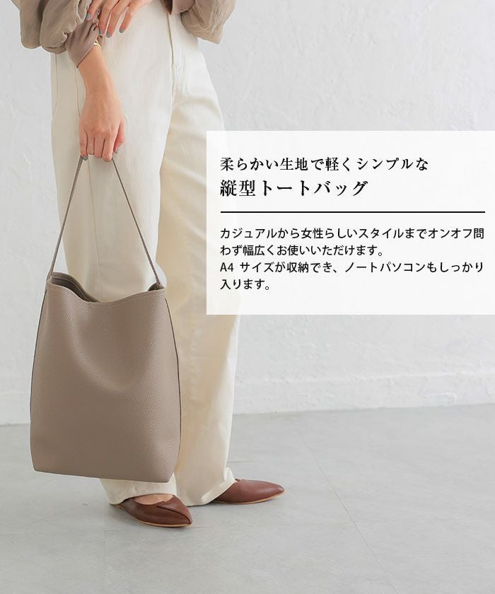 • 柔らかい生地で軽くシンプルな縦型トートバッグ