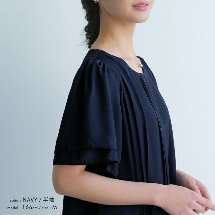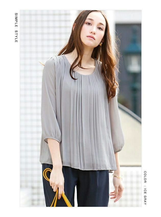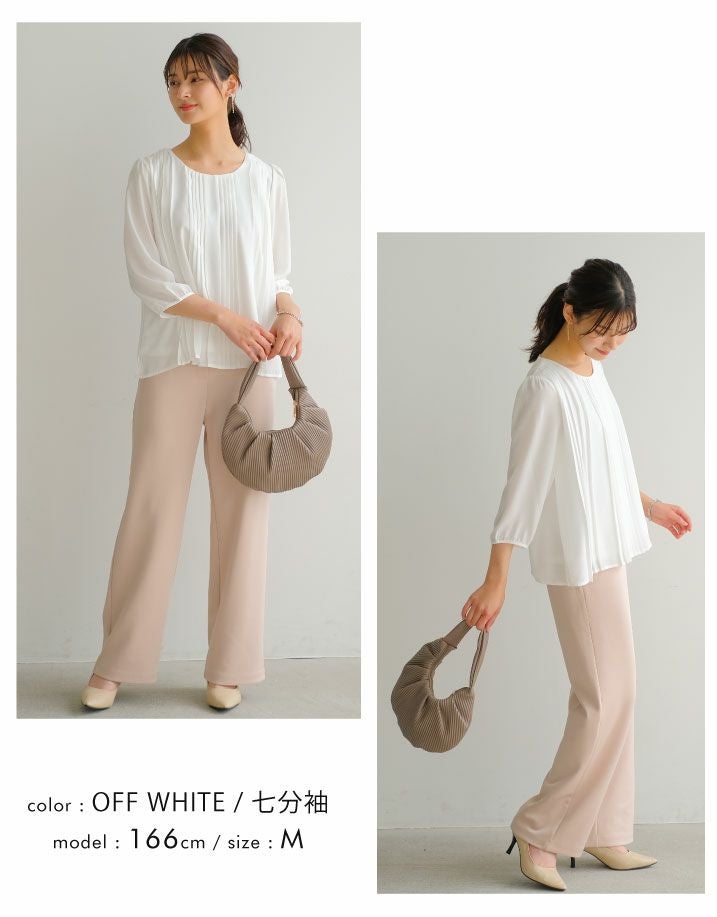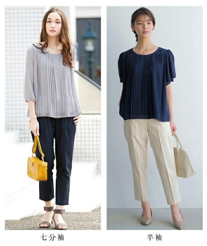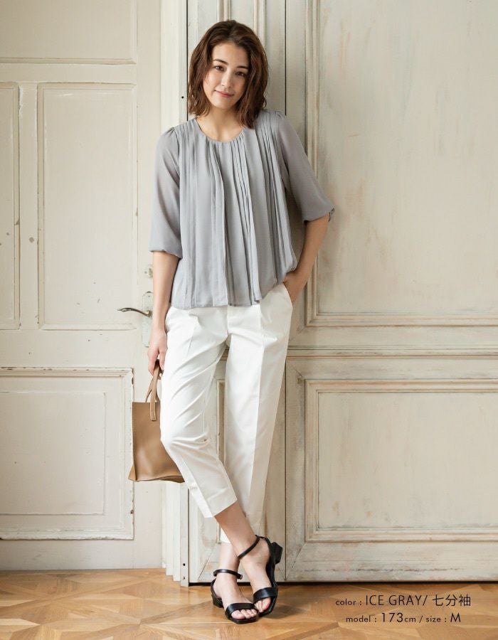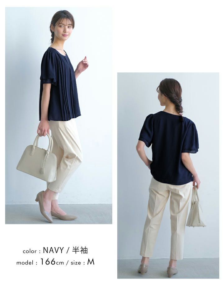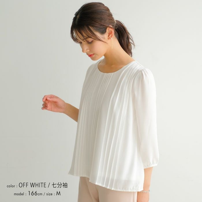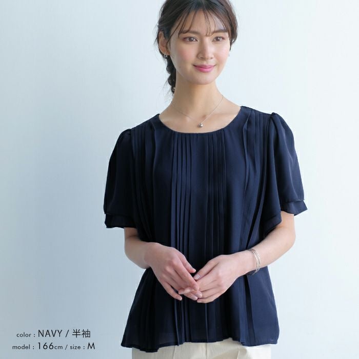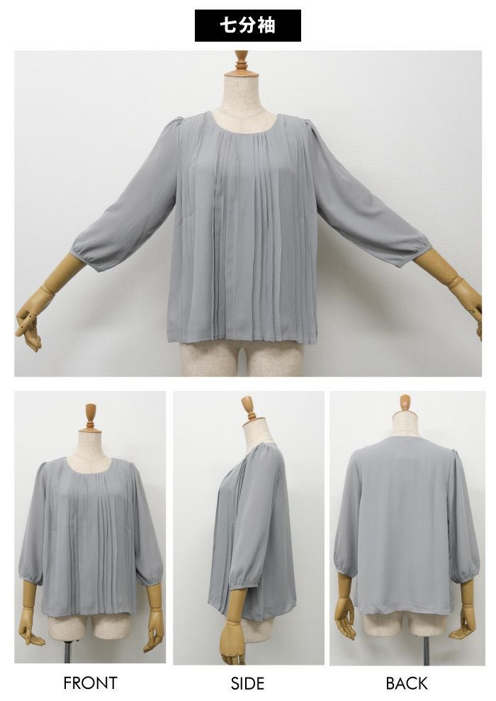 半袖or7分袖から選べる フロントプリーツシフォンブラウス M L LL 春 夏 半袖 7分袖 七分袖≪ゆうメール便配送20・代引不可≫ | アクアガレージ aquagarage