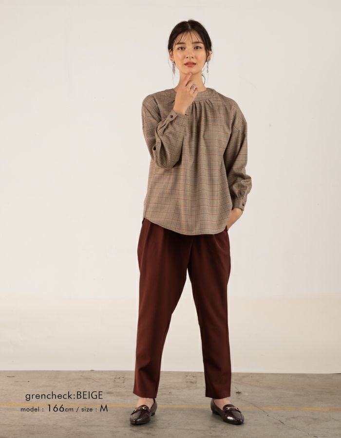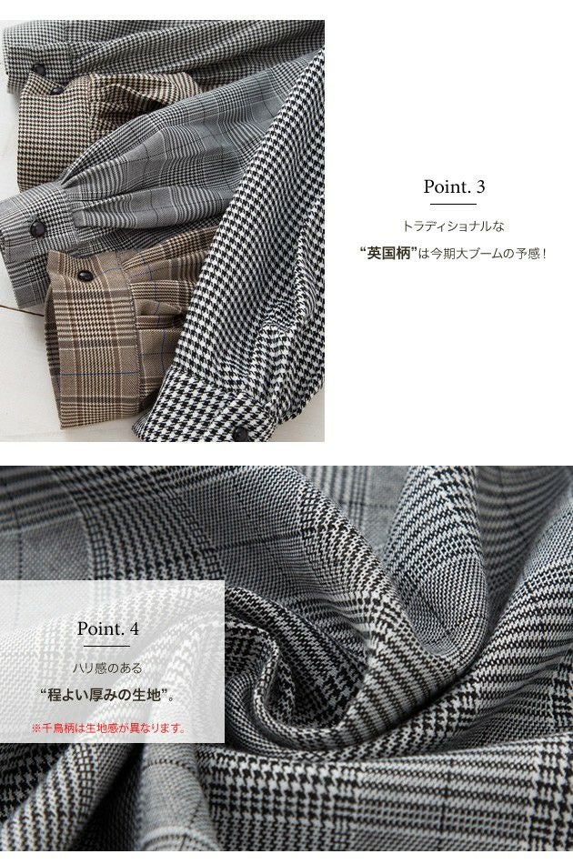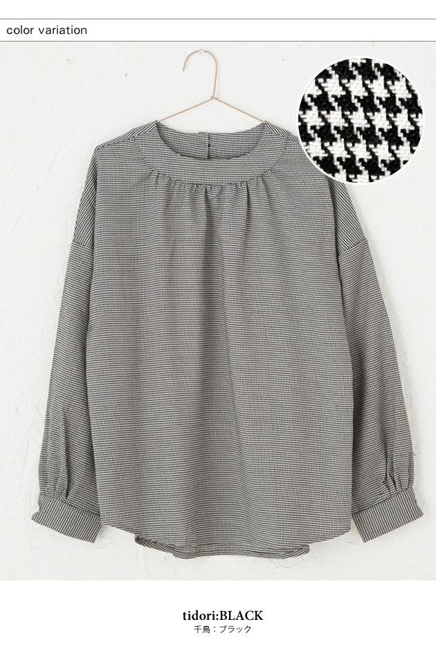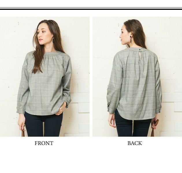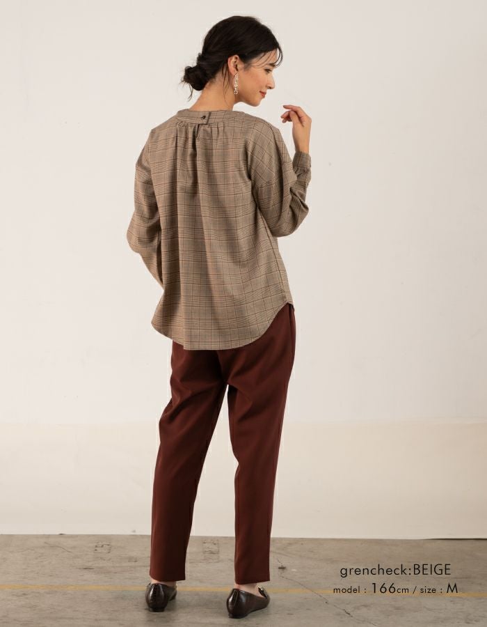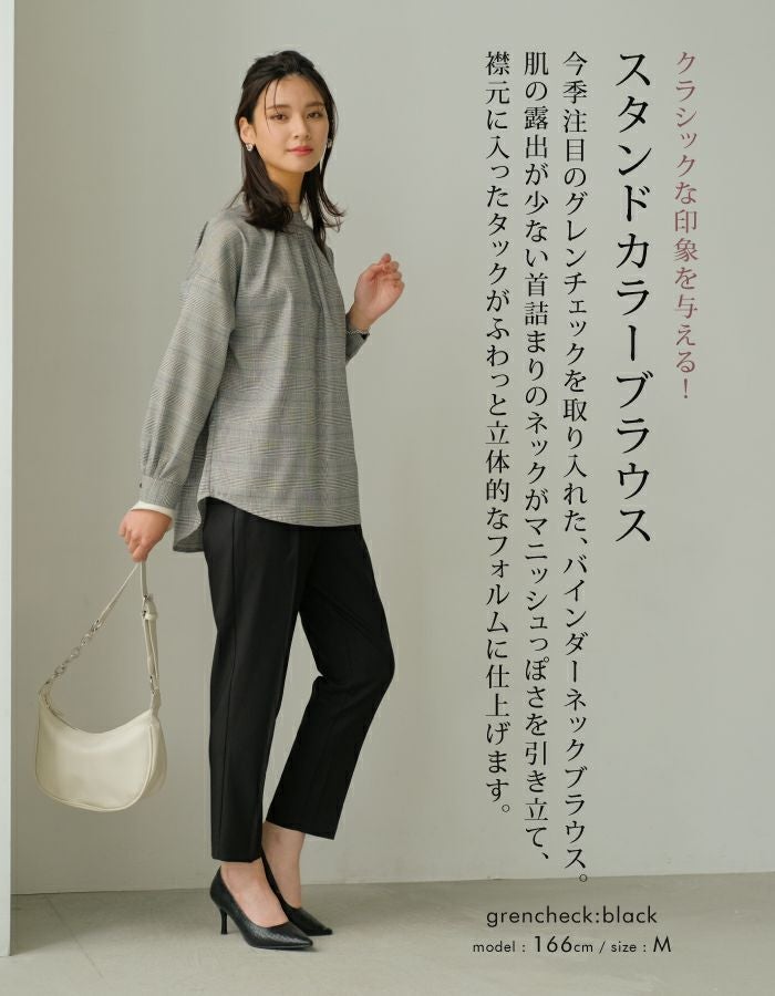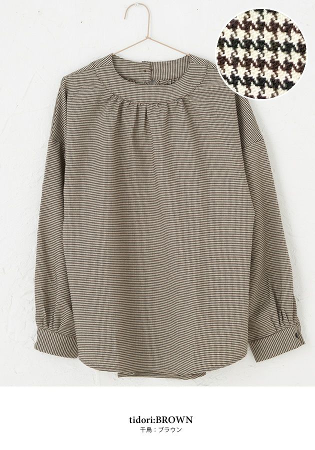 程よい厚みの生地です。英国柄のバインダーネックシャツブラウス。