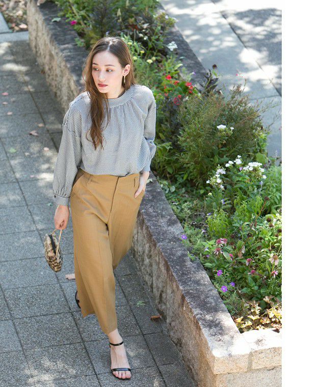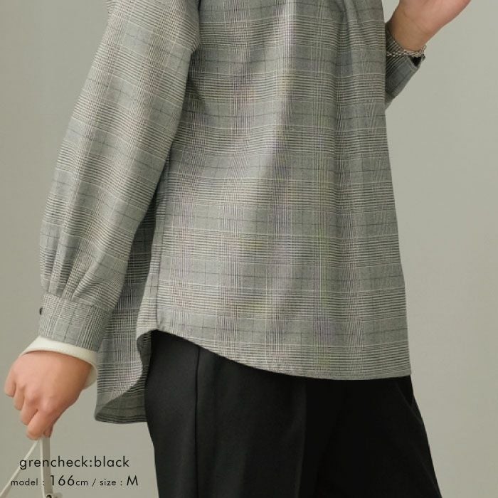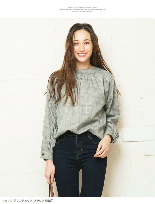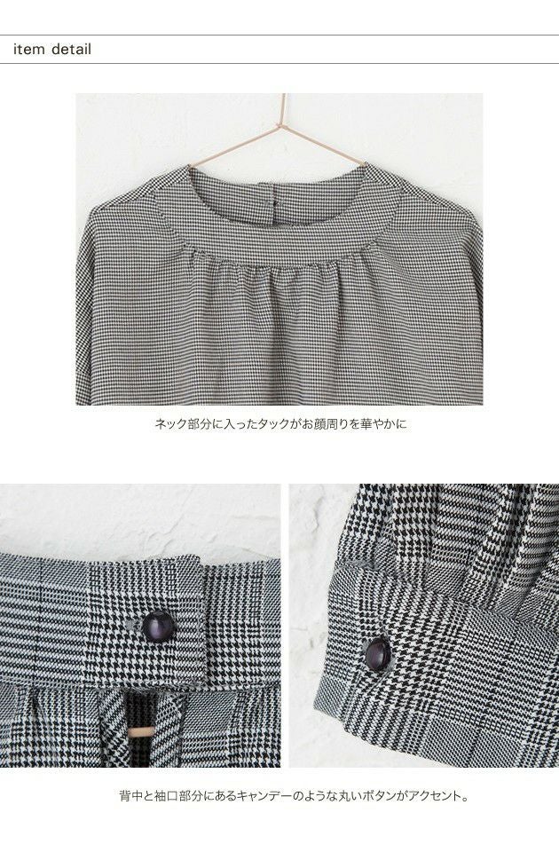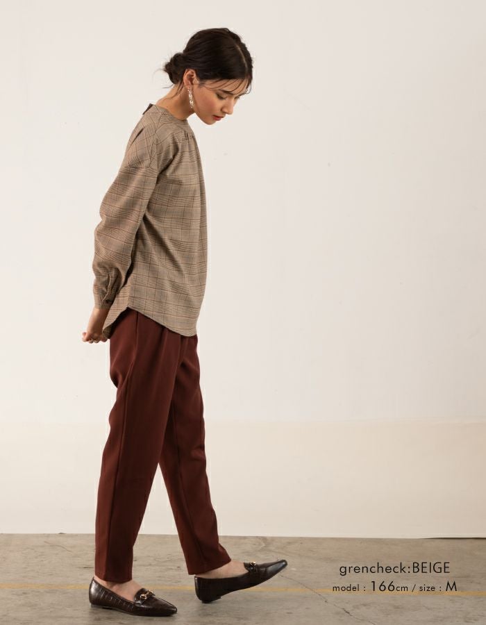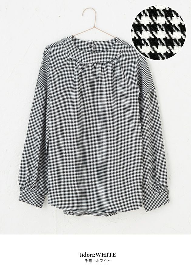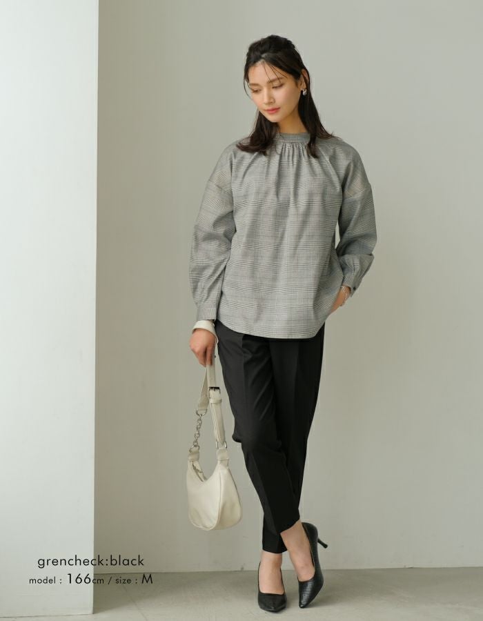 程よい厚みの生地です。英国柄のバインダーネックシャツブラウス。
