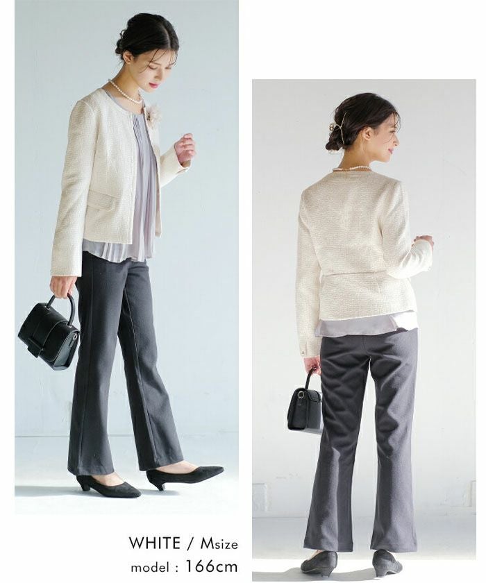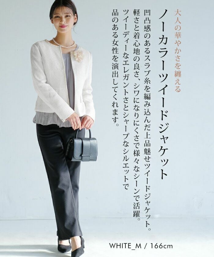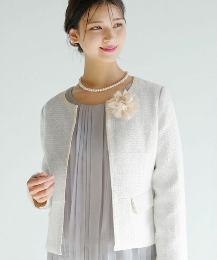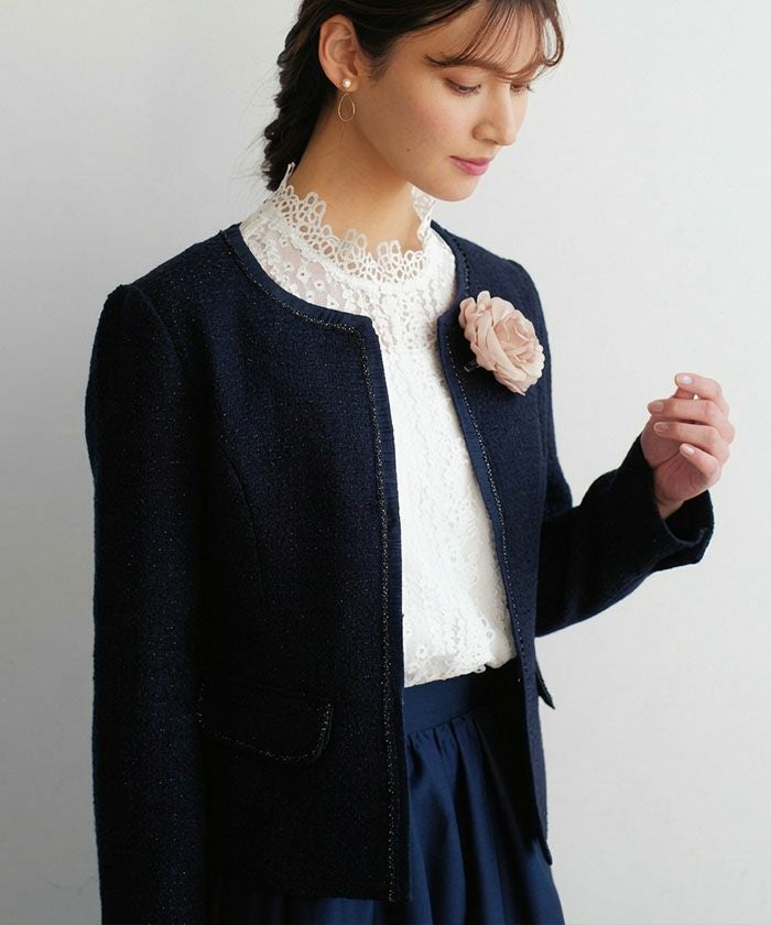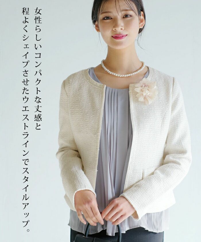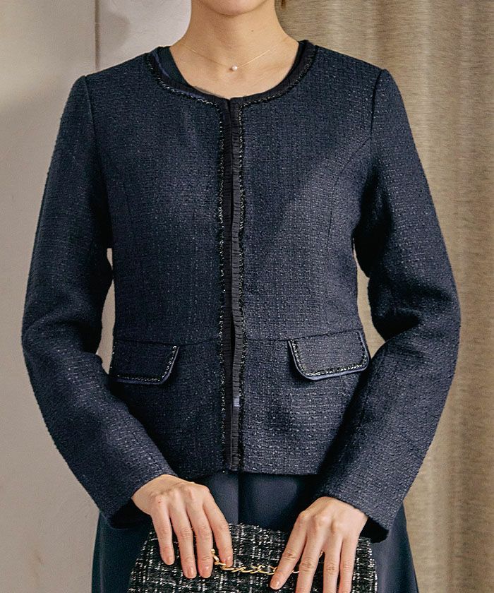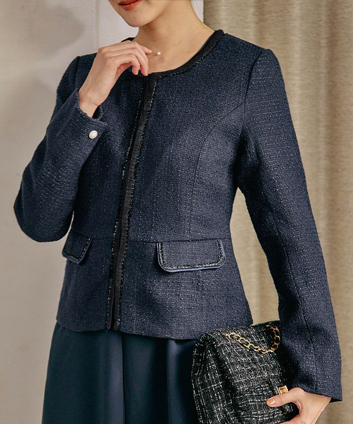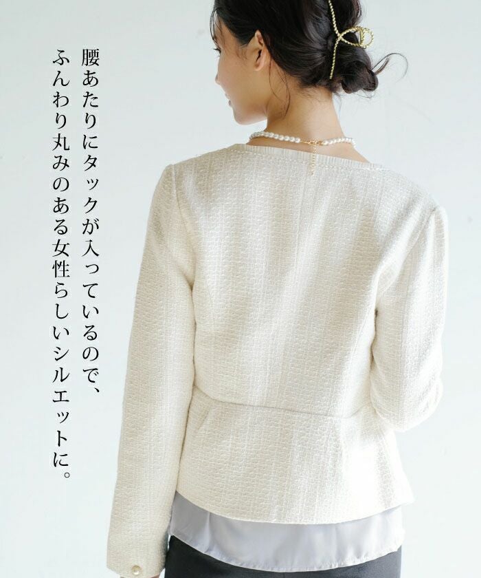 • 大人の華やかさを纏える。 ノーカラーツイードジャケット。