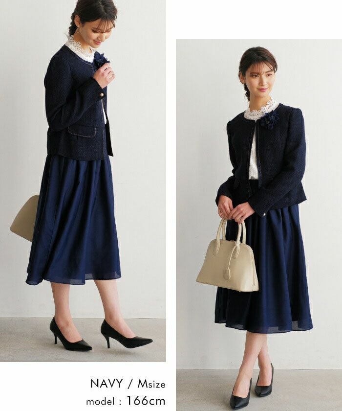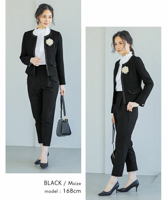 ツイーディーなエレガントさとシャープなシルエットで品のある女性を演出してくれます。