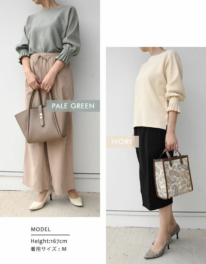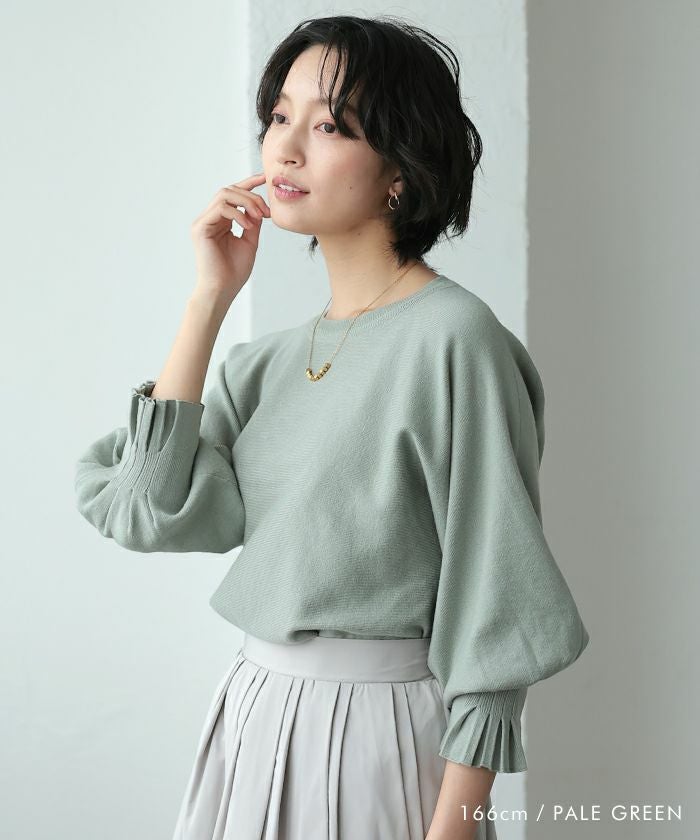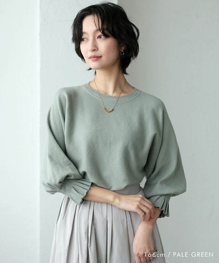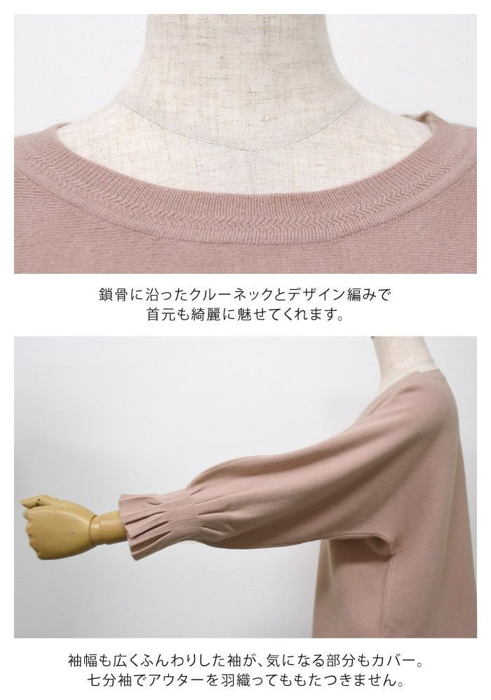 送料無料 袖口プリーツニットトップス レディース 春 秋 冬 七分袖 八分袖 長袖 M L ≪ゆうメール便配送30・代引不可≫ | アクアガレージ aquagarage