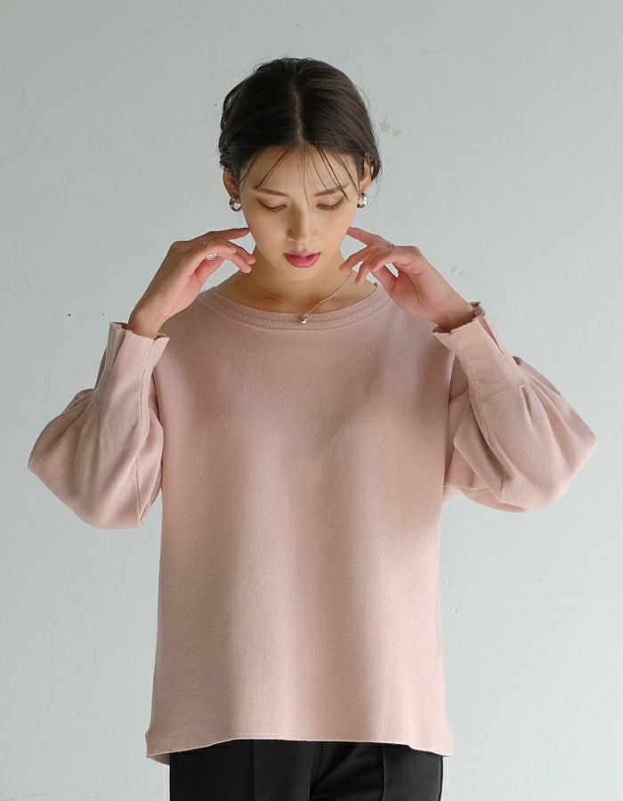 • 女性らしいディテールが魅力の七分袖ニットトップス。