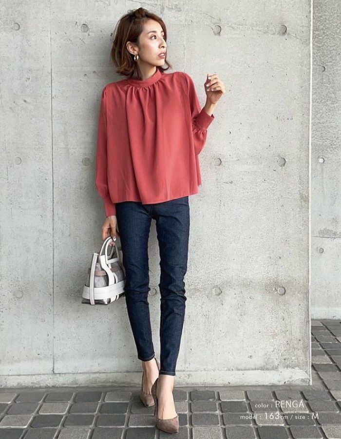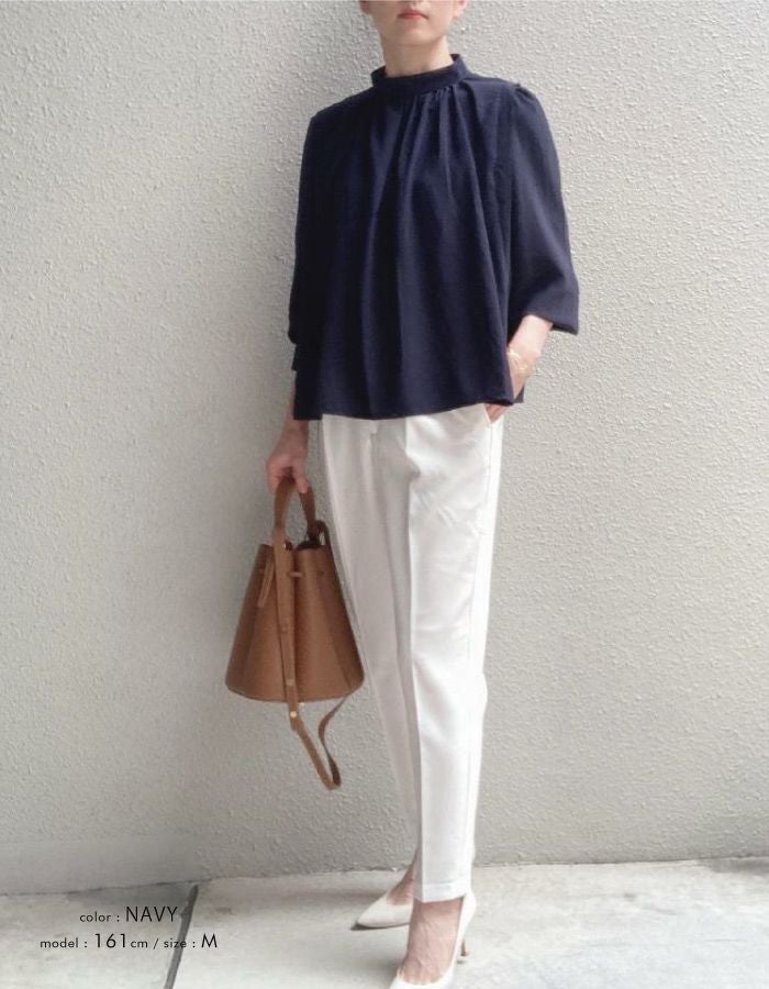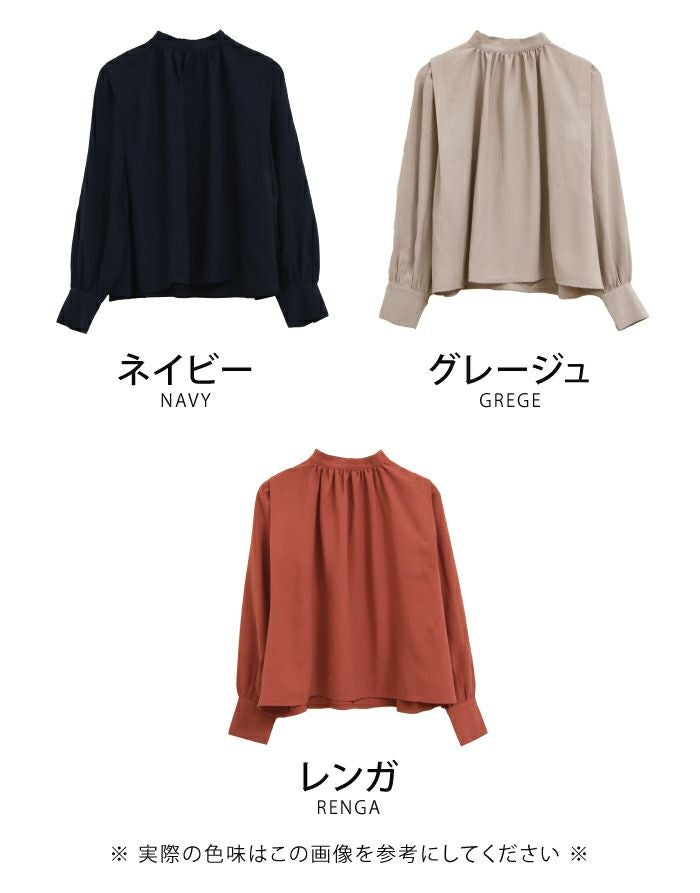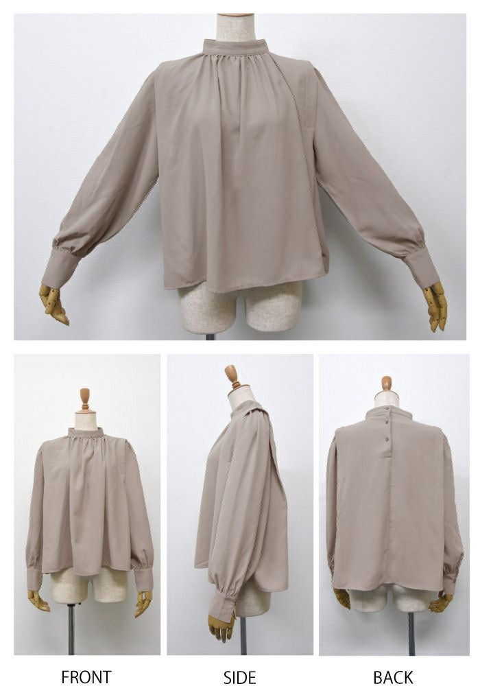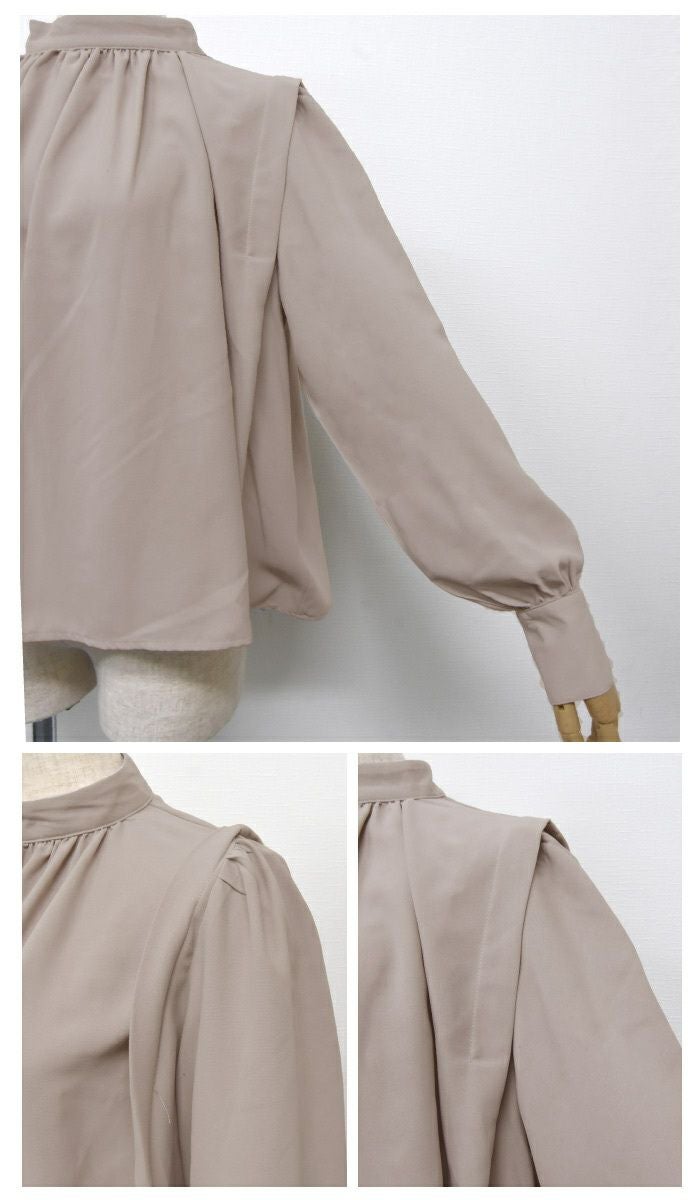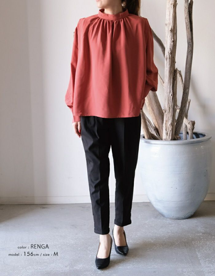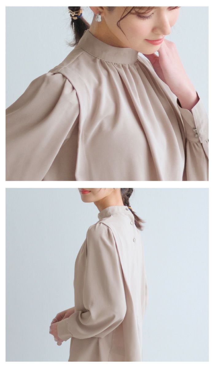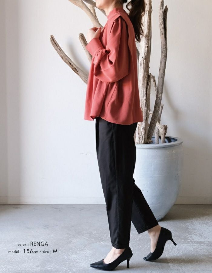 • さらっと1枚で着こなせる! ショルダータックバンドカラーブラウス