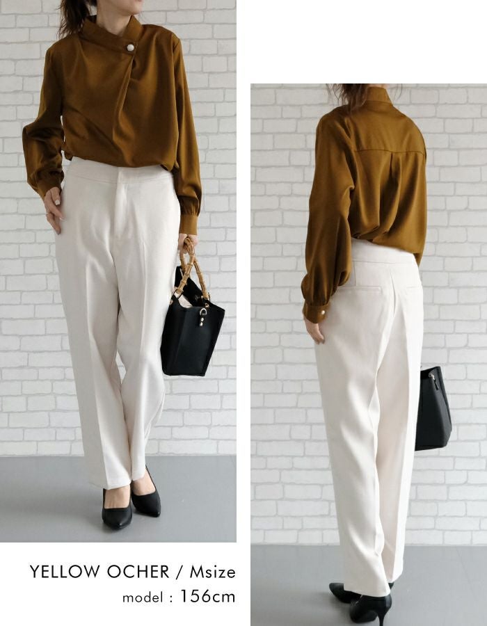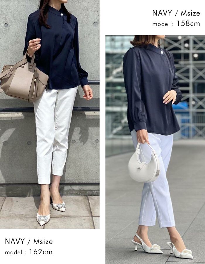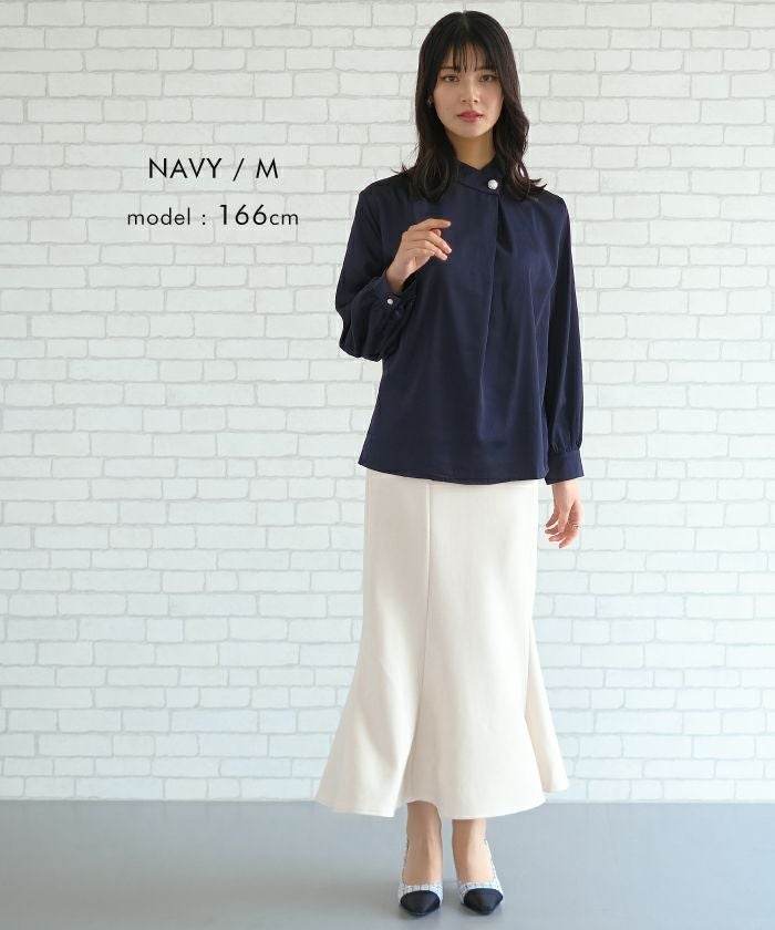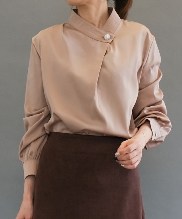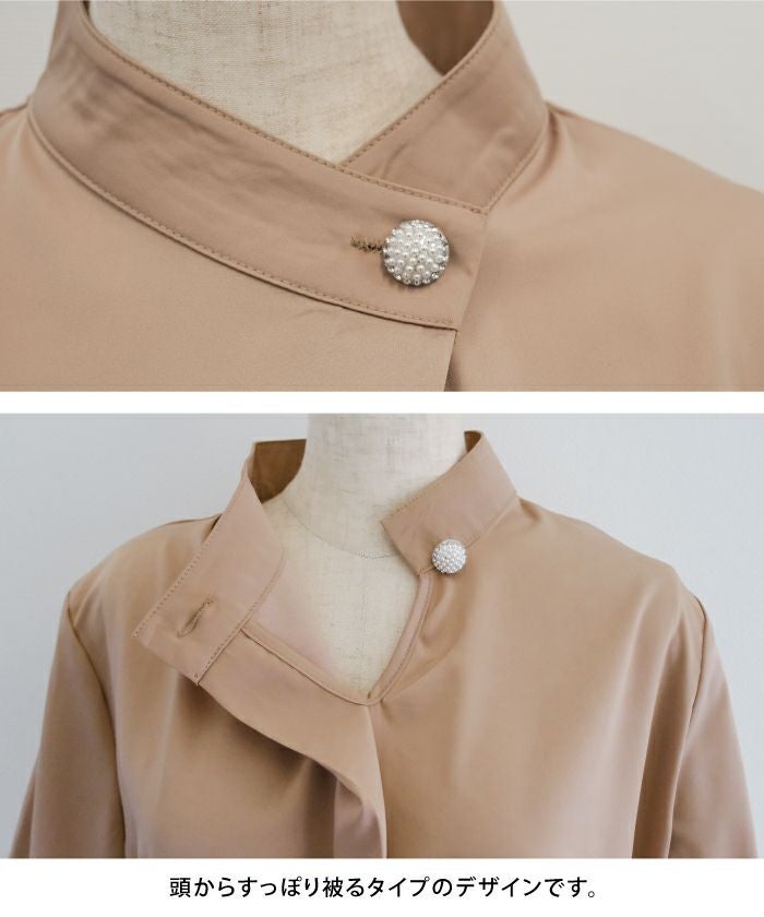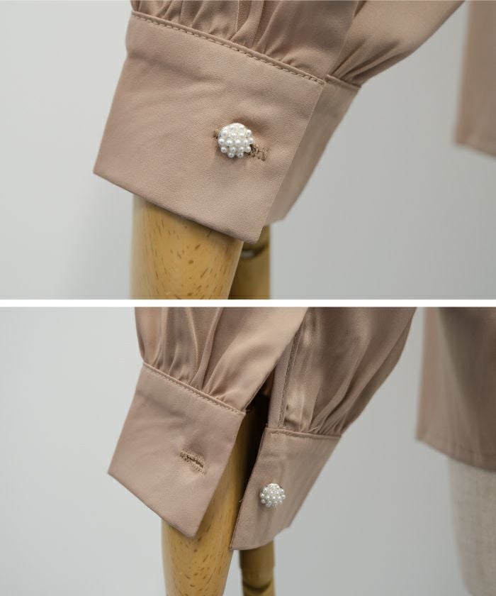 • シンプルながら表情豊かに着映える!ビジューパールボタンブラウス