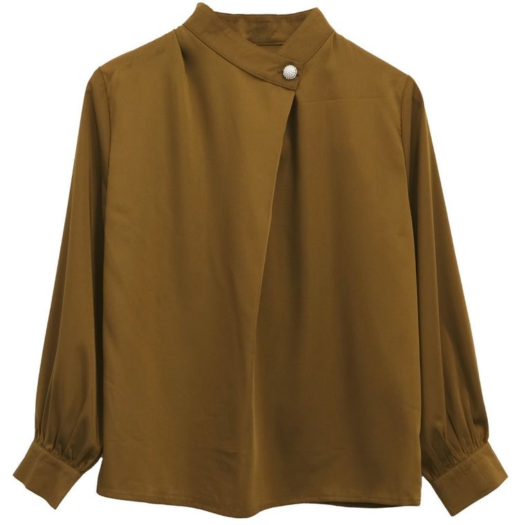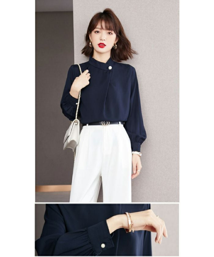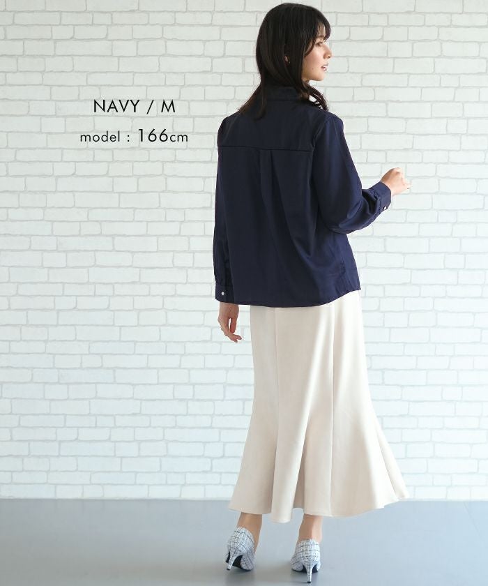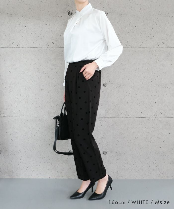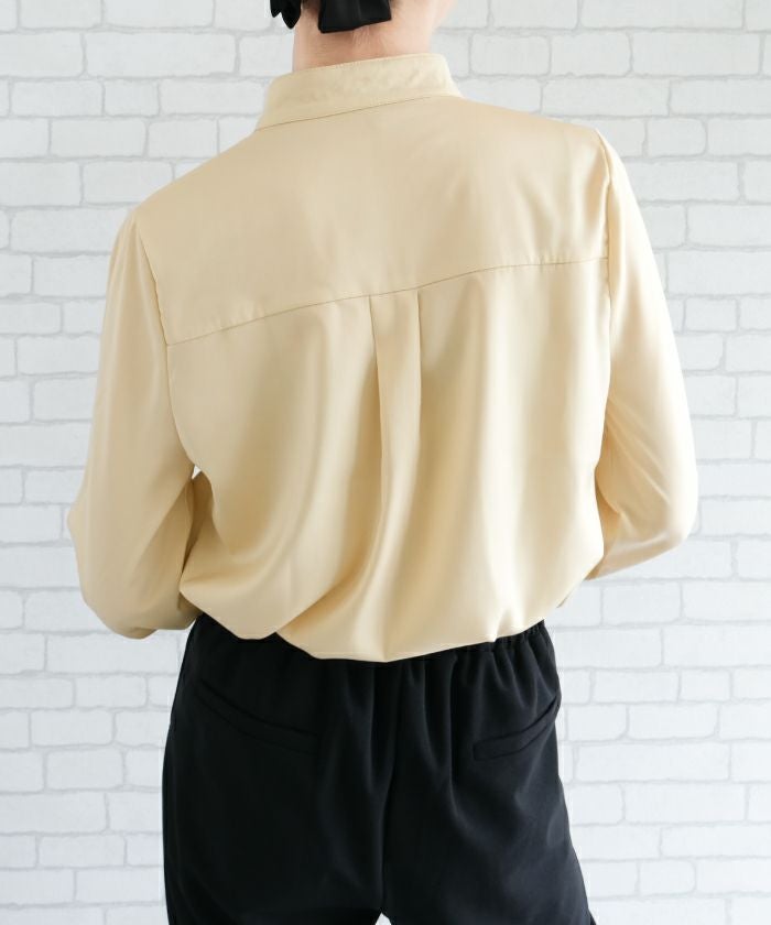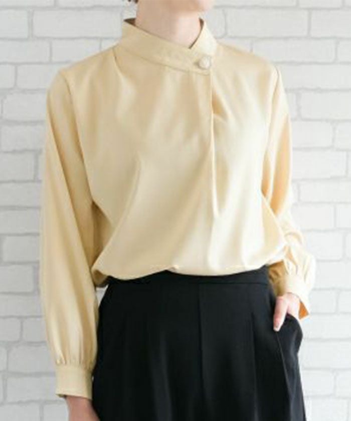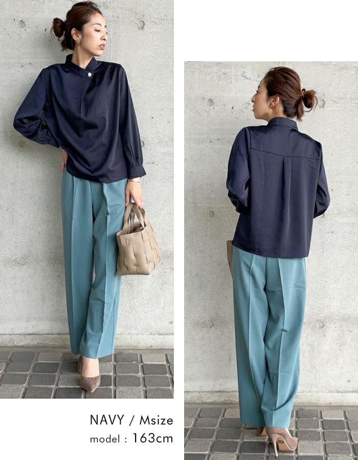 • シンプルながら表情豊かに着映える!ビジューパールボタンブラウス