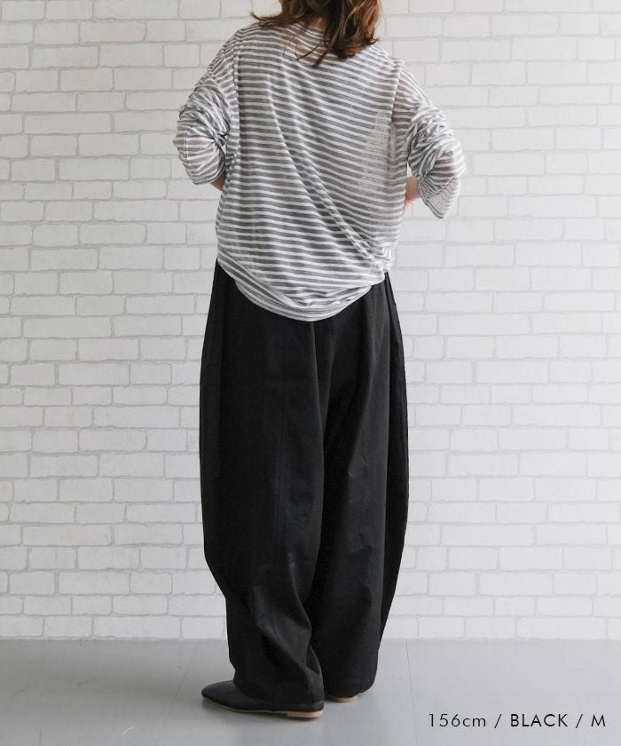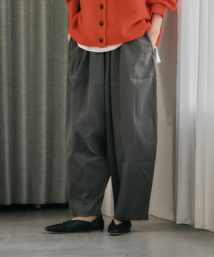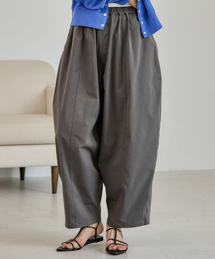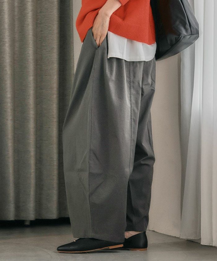 樽(バレル)のような曲線が印象的な、ヒップから裾にかけて丸みを出したシルエットのパンツ。