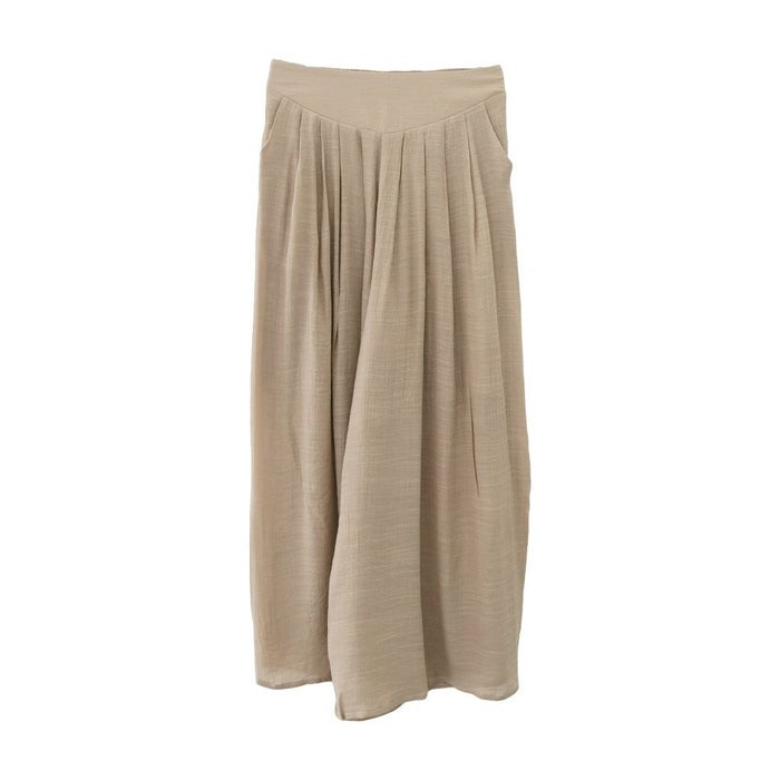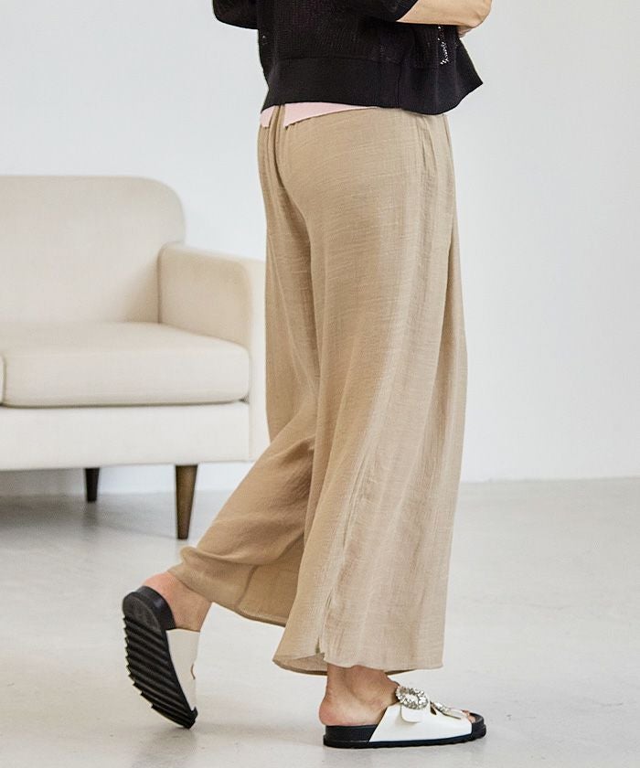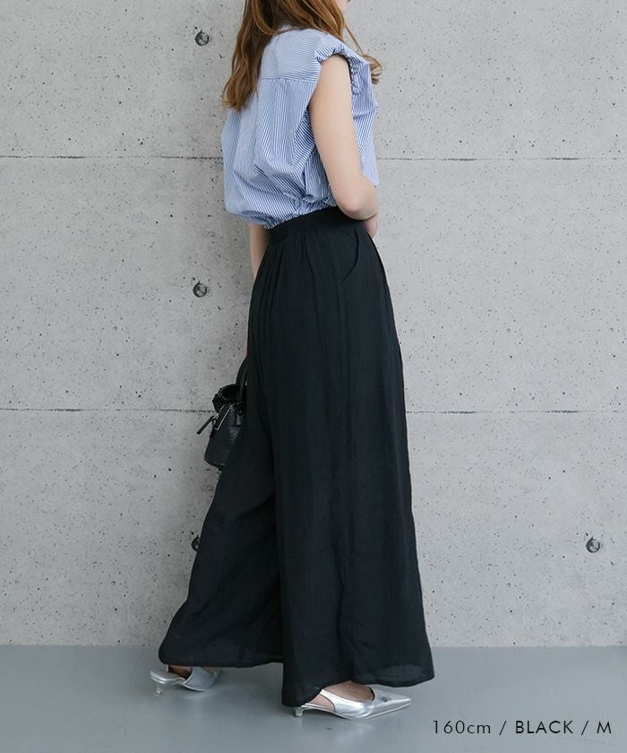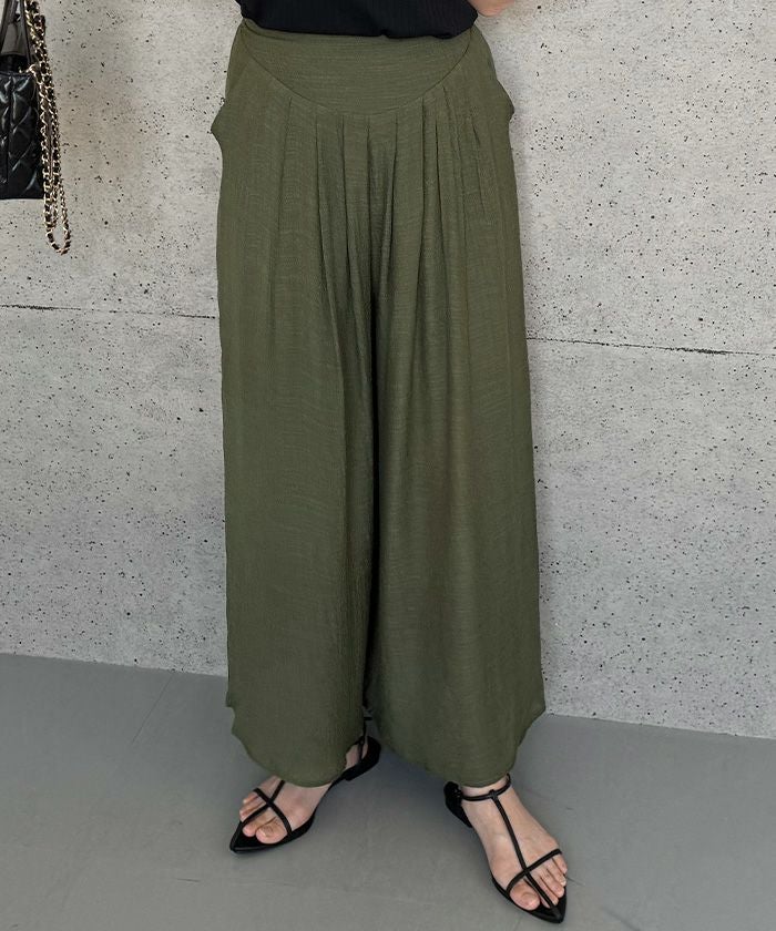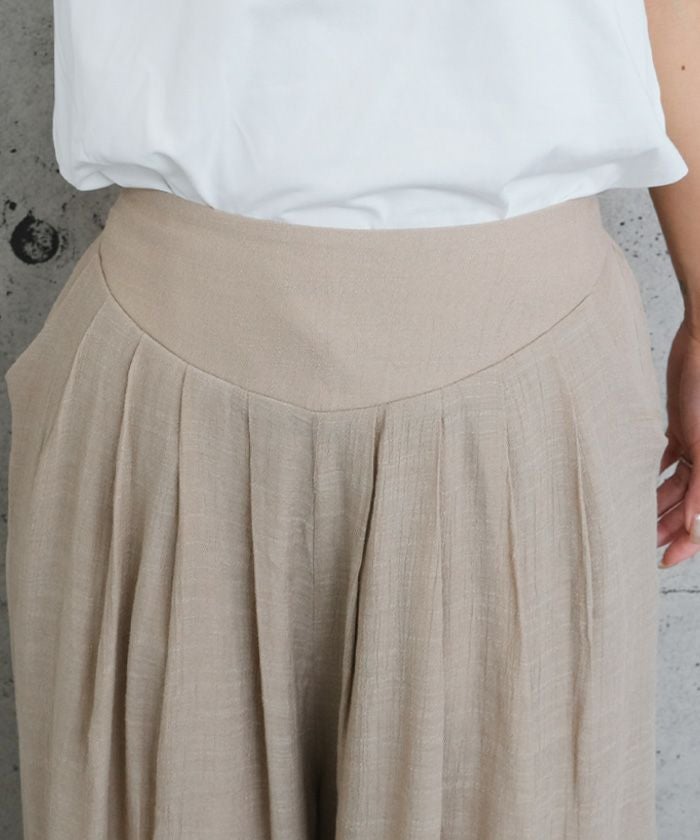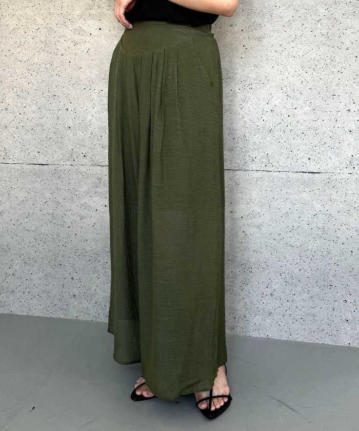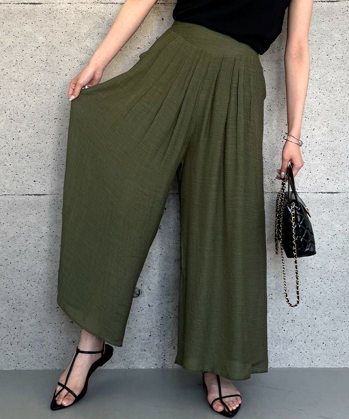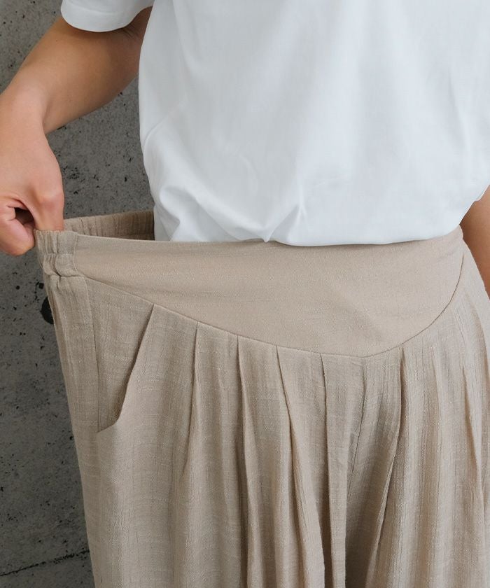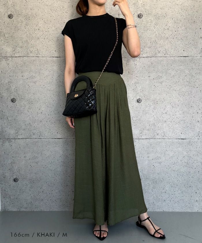 スカートのようなエレガントな見た目と、パンツの実用性を兼ね備えたアイテムです。