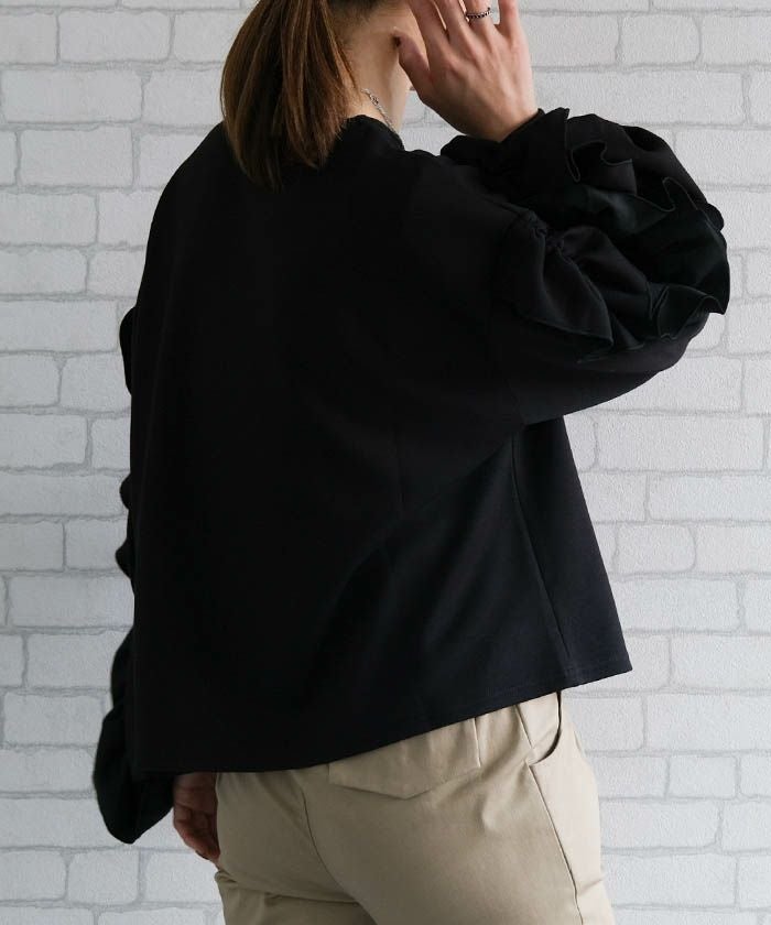 • ダンボールニットボリュームフリルスリーブトップス