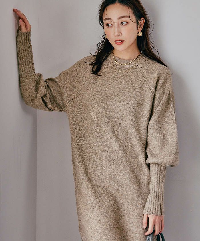 ふんわりとしたボリュームスリーブが特徴的で、腕まわりをさりげなくカバーしつつ、女性らしい印象をプラスするニットワンピースです。