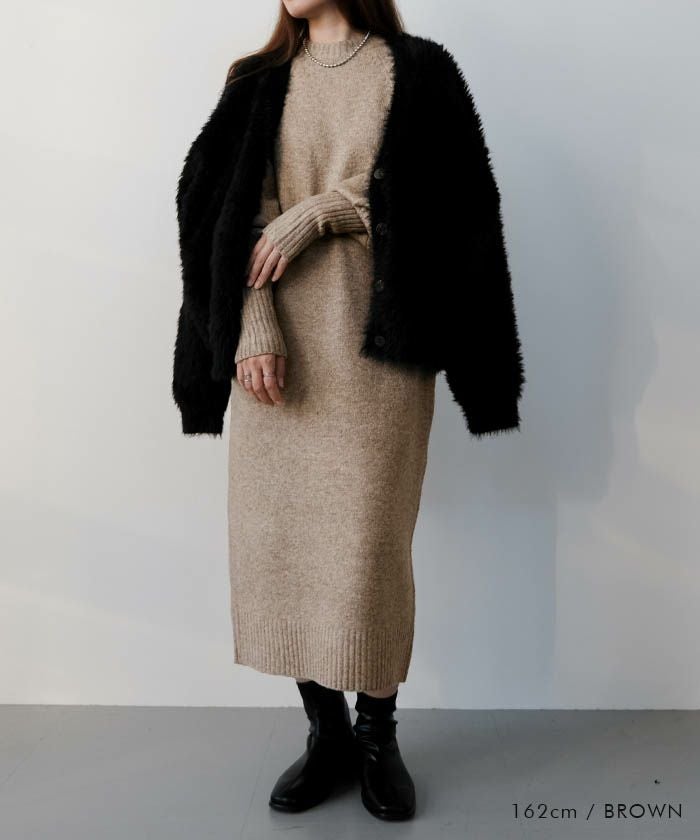 ・ニットワンピースとして1枚で映える存在感