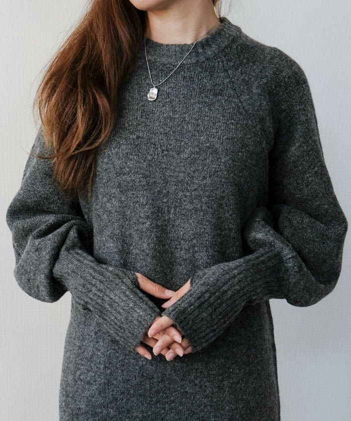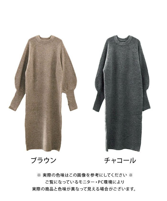 指穴付きボリュームスリーブニットワンピース レディース 秋 冬 | アクアガレージ aquagarage