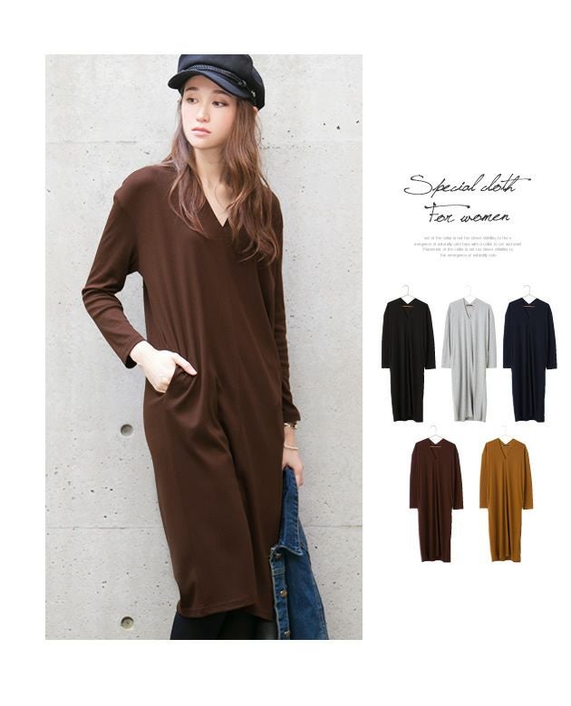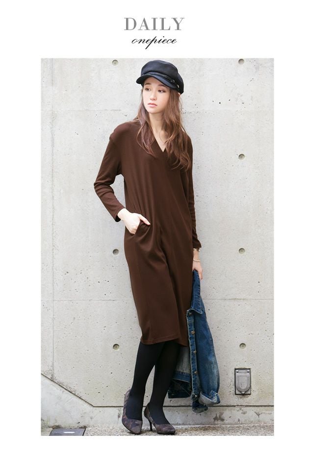 ひざ丈ワンピース 深Vネック ≪ゆうメール便配送30・代引不可≫ | アクアガレージ aquagarage