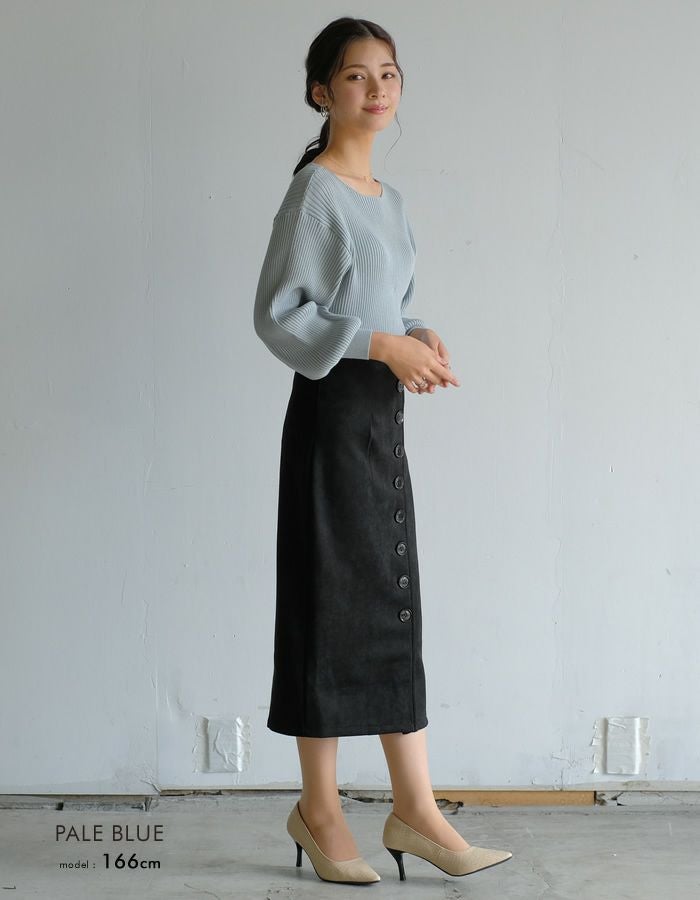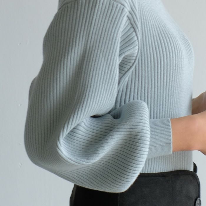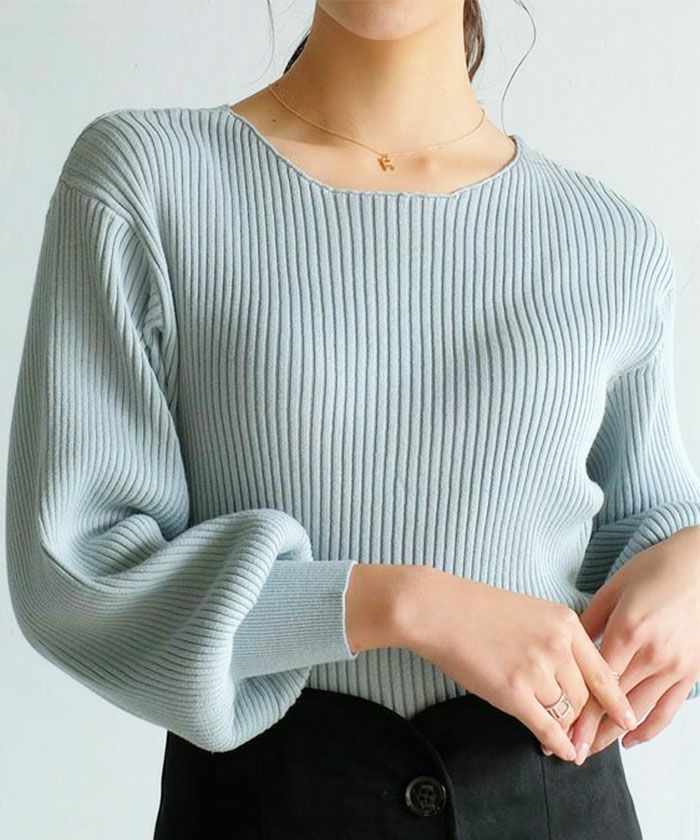 • スッキリと女性らしいシルエットのバルーンスリーブニットトップス。