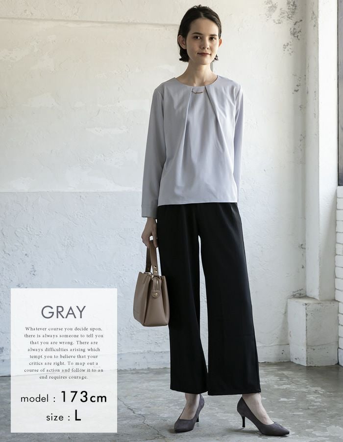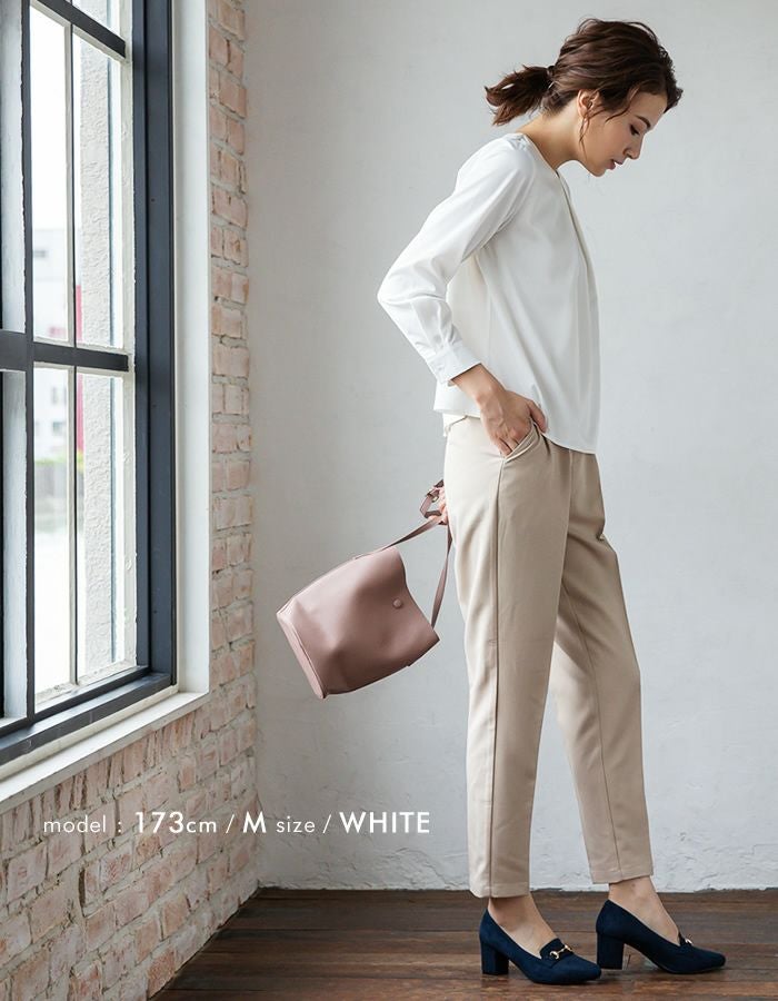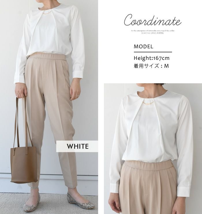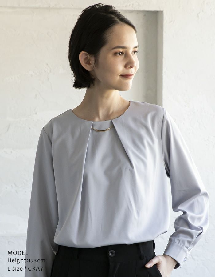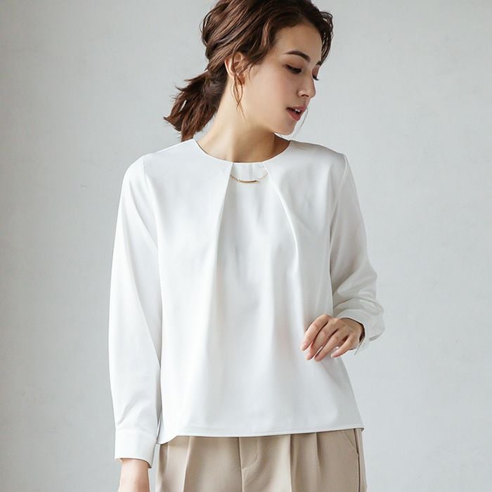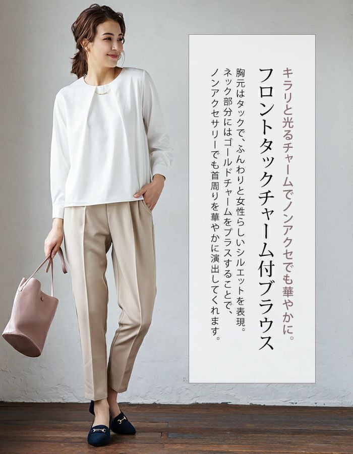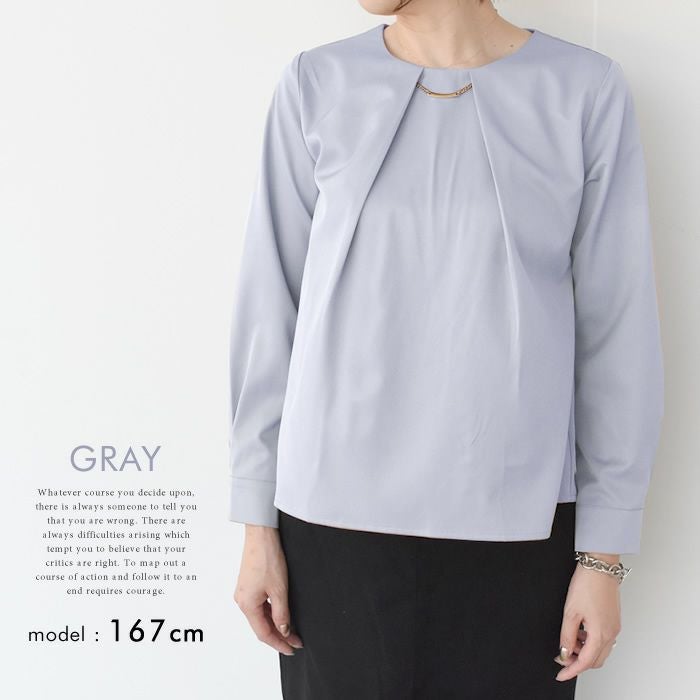 • キラリと光るチャームでノンアクセでも華やか!フロントタックチャーム付きブラウス。