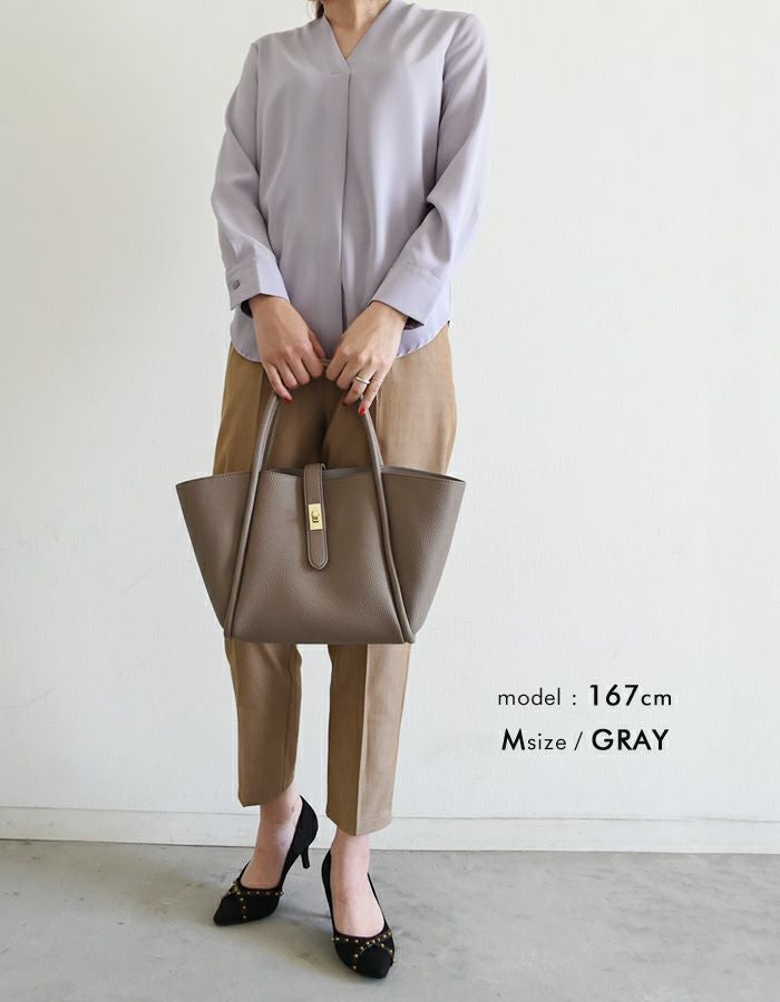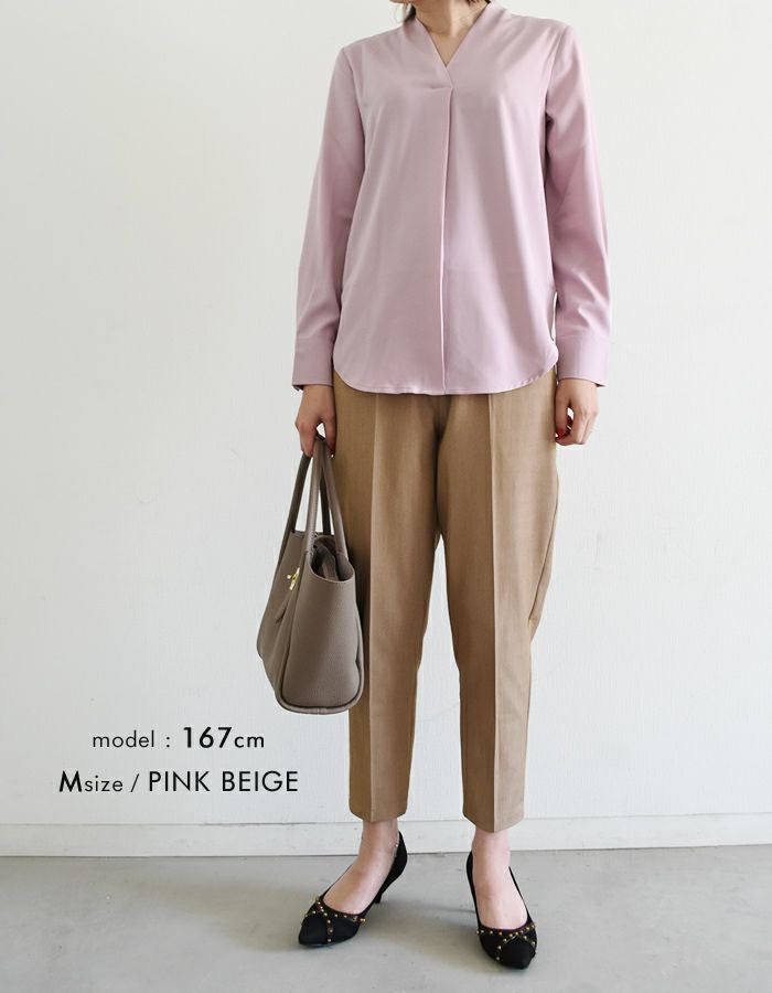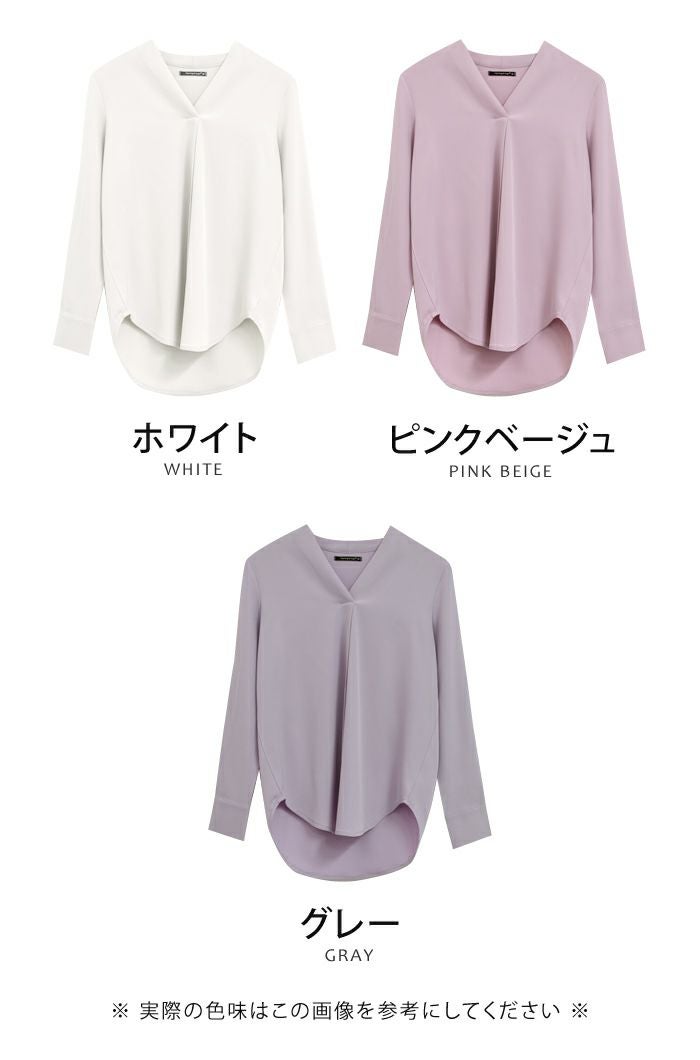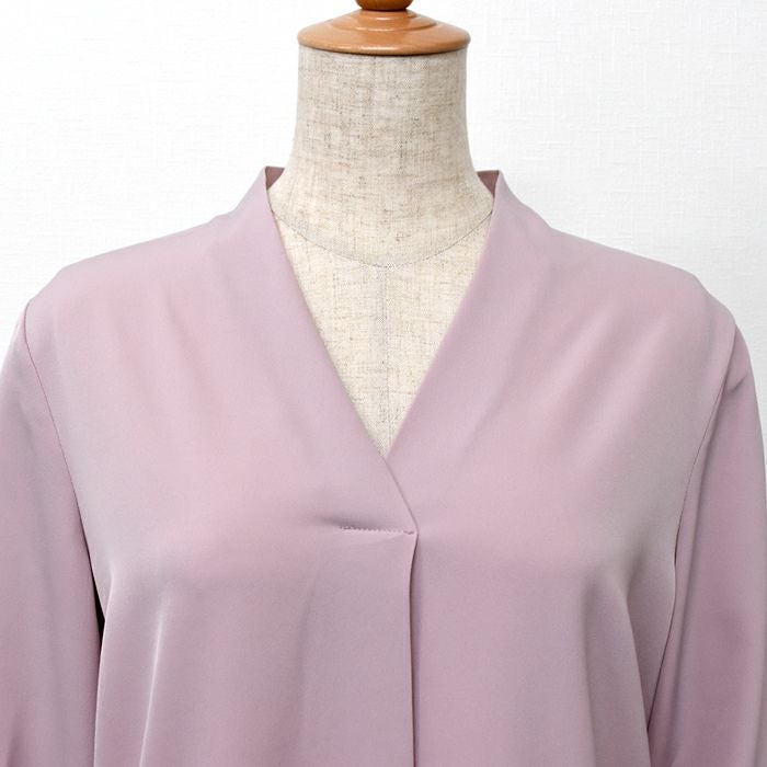 浅めのVネックデザインが顔まわりをスッキリ見せ女性らしさを引き立てます。