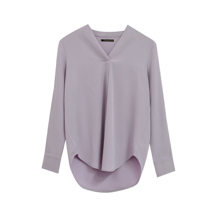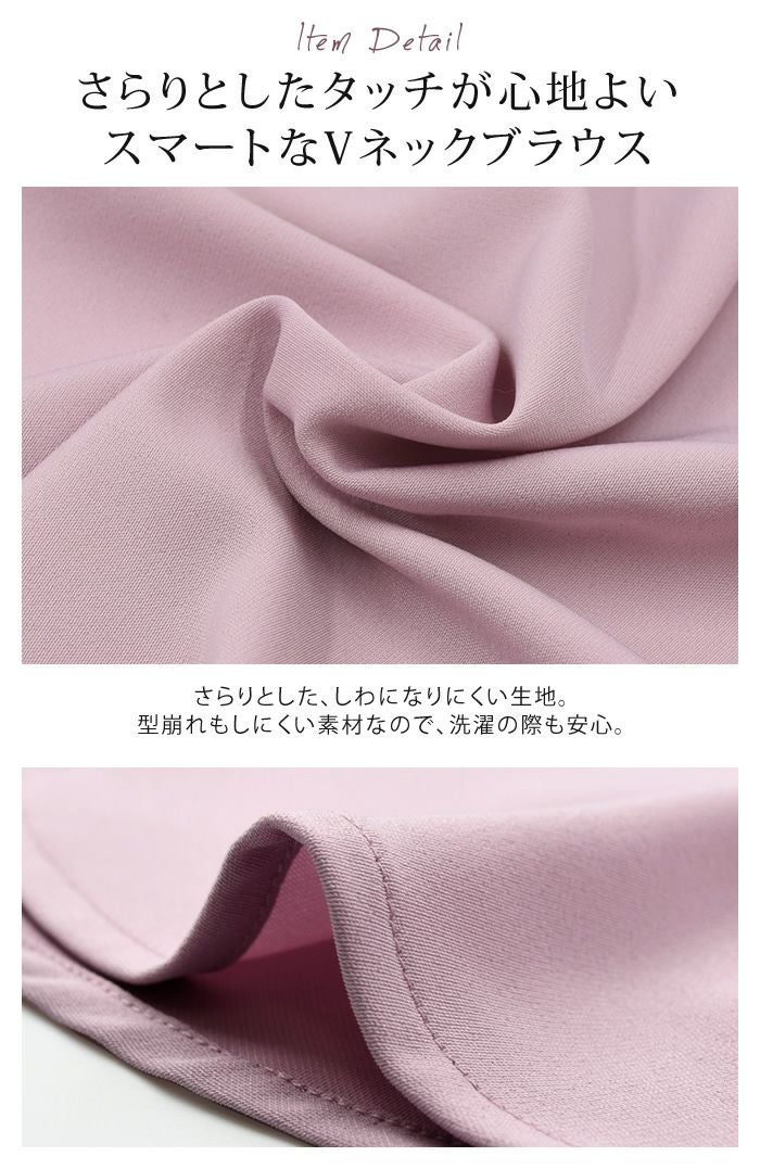 • 女性らしくフェミニンな雰囲気に仕上げたVネックブラウス。