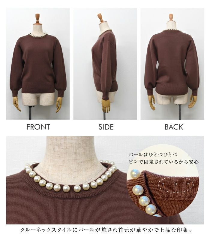送料無料 パールネックニットトップス レディース 秋 冬 長袖 M L | アクアガレージ aquagarage