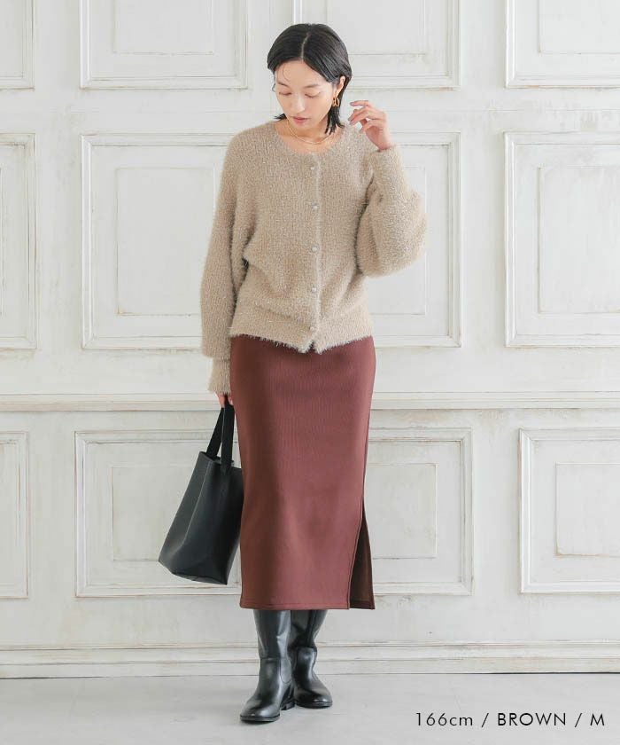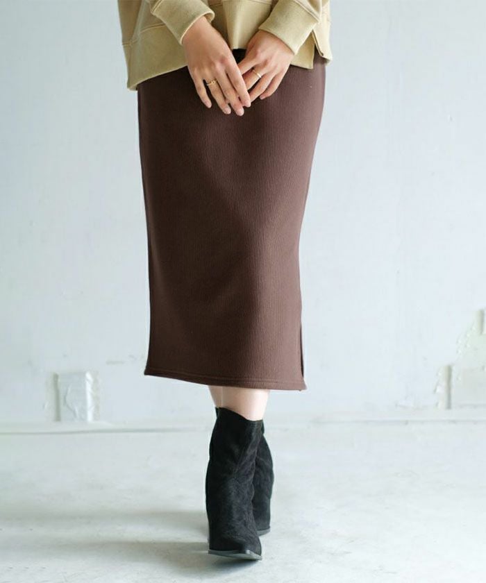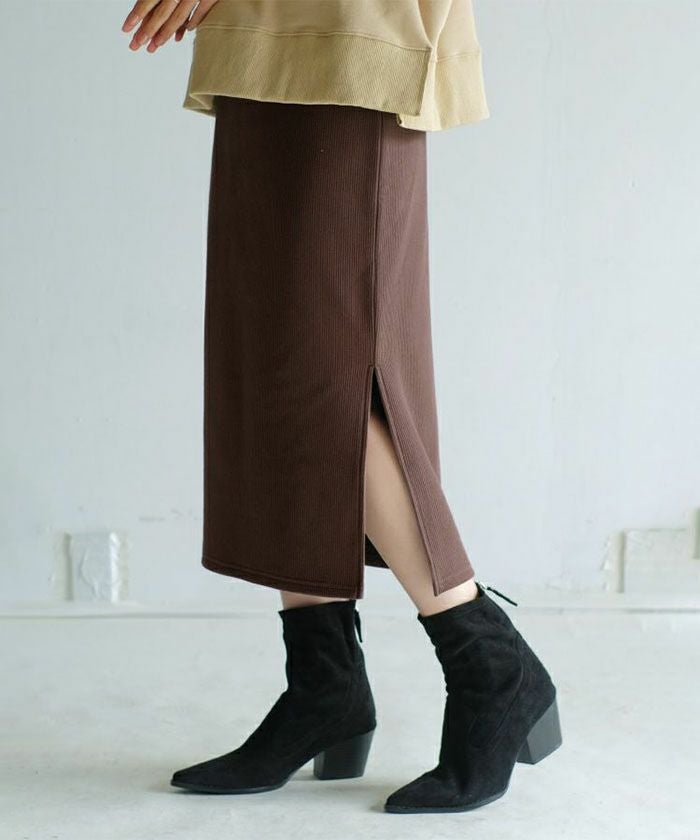 人気のリブスカートにあたたかい裏起毛バージョンが登場! 裏起毛なのに伸縮性があって動きやすく、深めスリットで足捌きも◎タイトな縦シルエットでスッキリと穿くことができます。