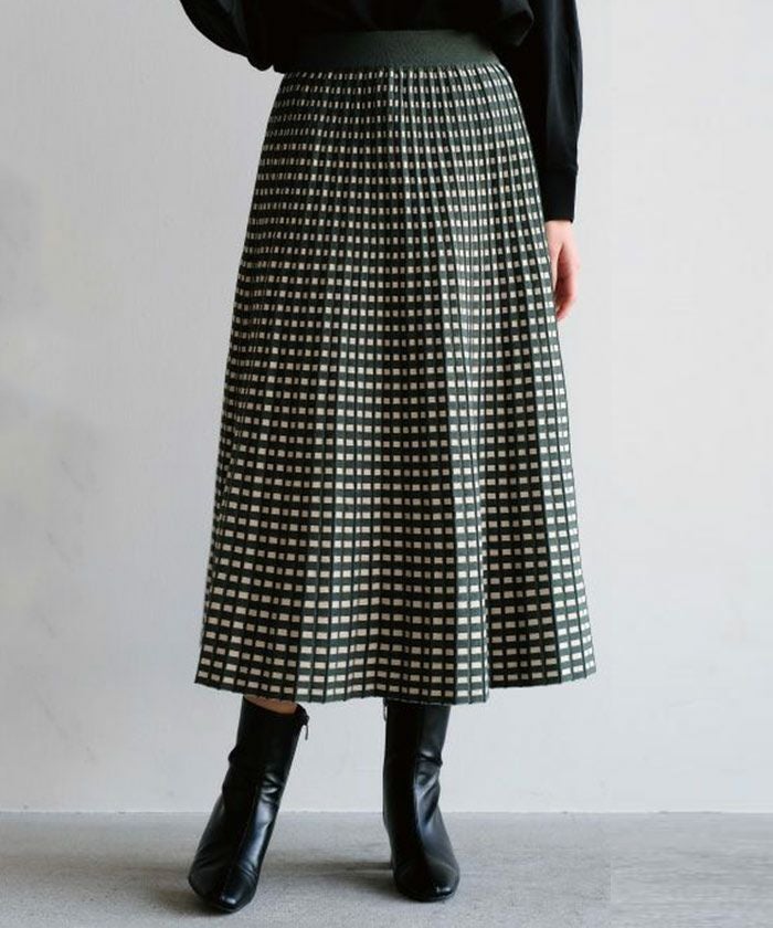 スクエアパターンニットスカート レディース 秋 冬 M L | アクアガレージ aquagarage