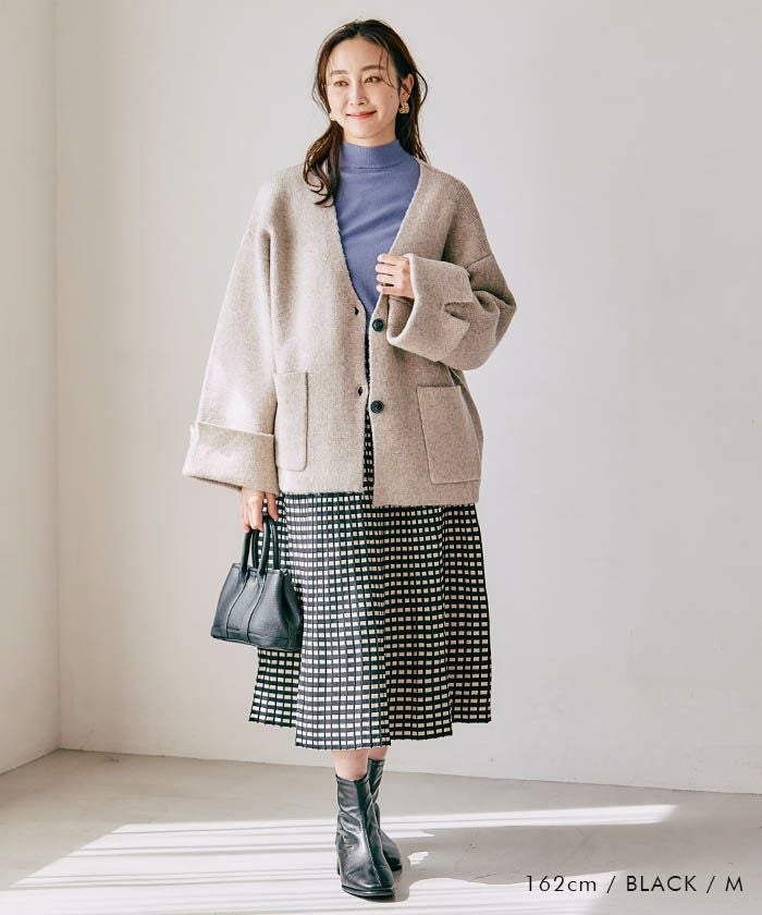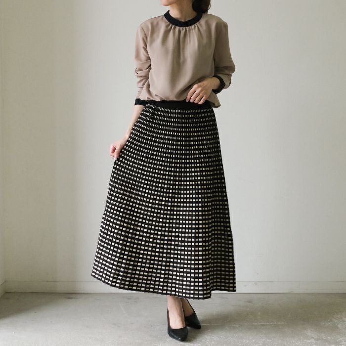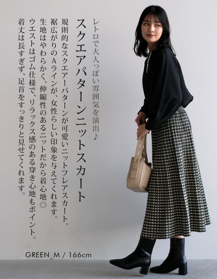• レトロで大人っぽい雰囲気を演出♪スクエアパターンニットスカート