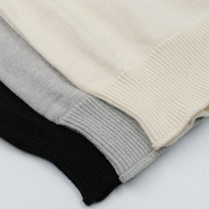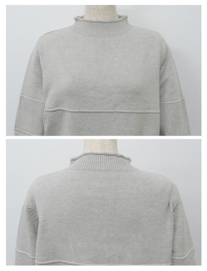 これからの寒い季節には嬉しい、ハイネックのニットトップス。 衿・袖口・裾のくるんとしたロール仕様がかわいらしい。 程よい厚みであたたかい、ハイゲージのニット生地です。