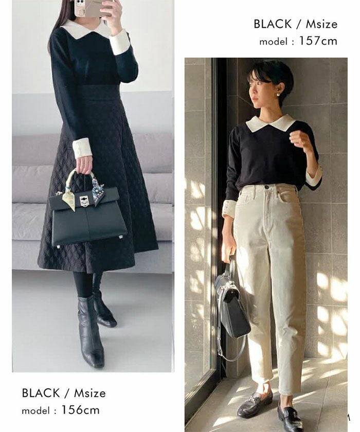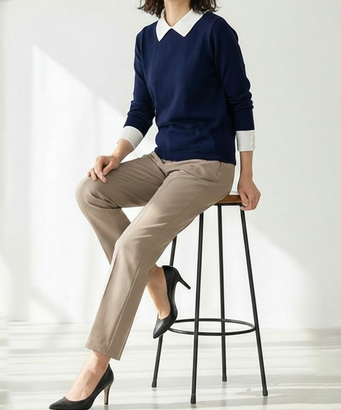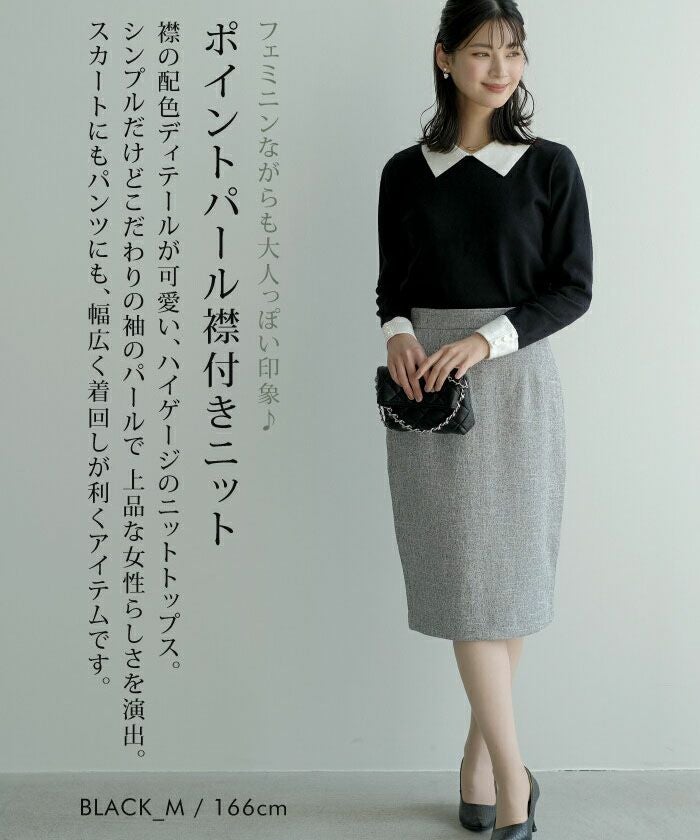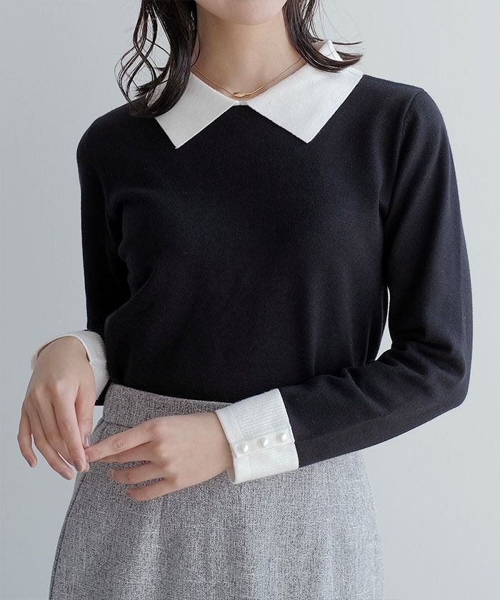 • フェミニンながらも大人っぽい印象♪ポイントパール襟付きニット