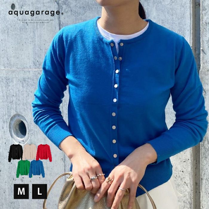 ドットボタンニットカーディガン レディース 春 秋 冬 M L 長袖 ≪ゆうメール便配送20・代引不可≫ | アクアガレージ aquagarage