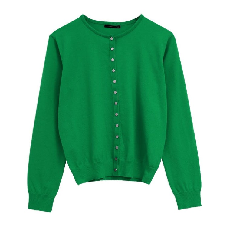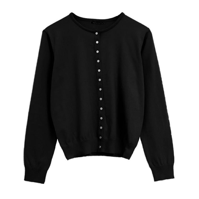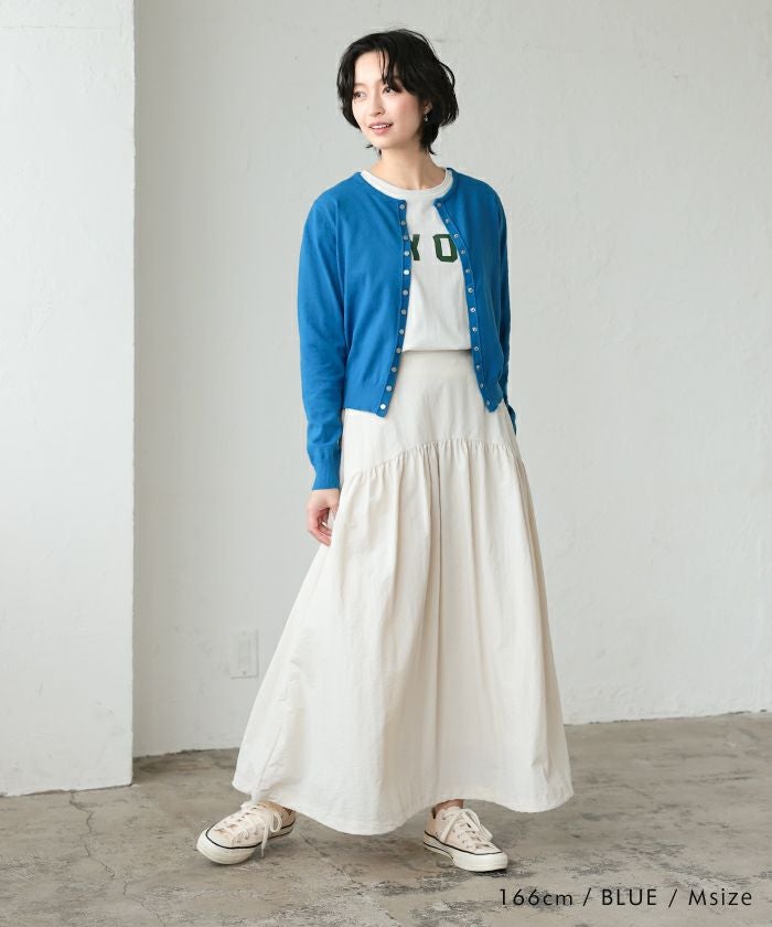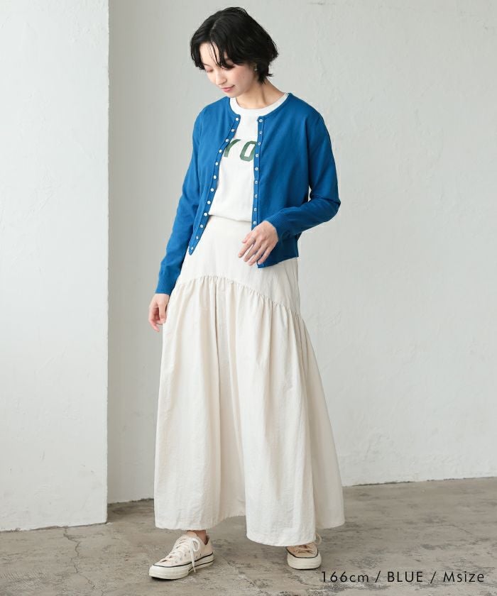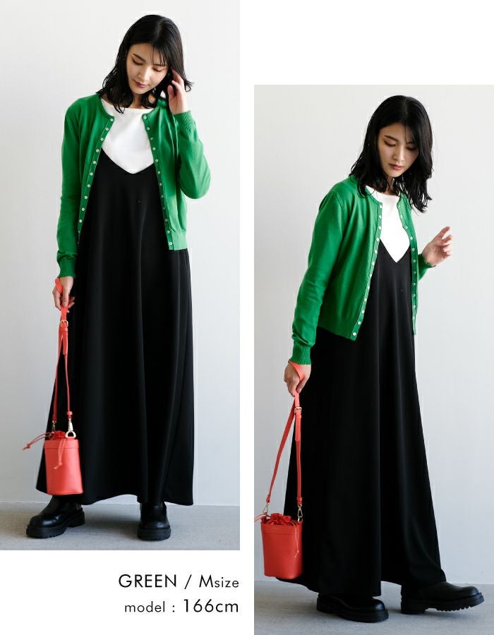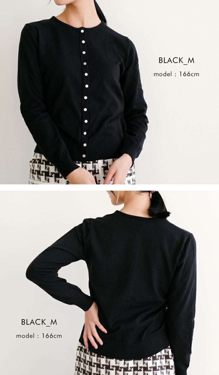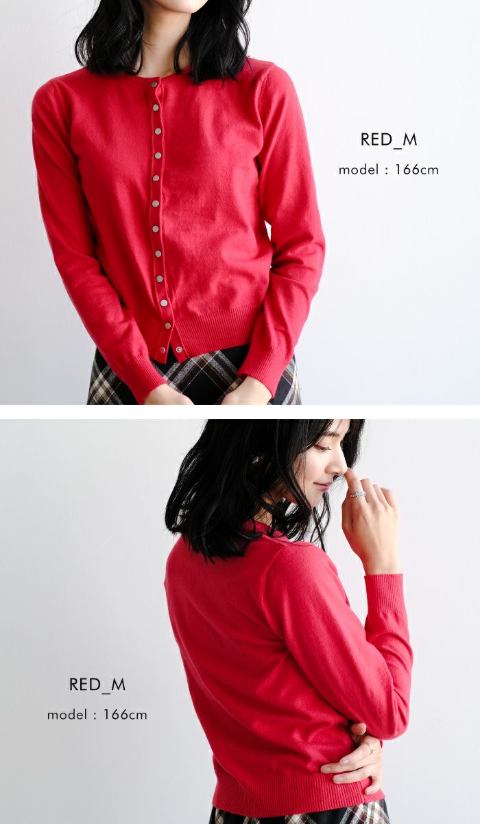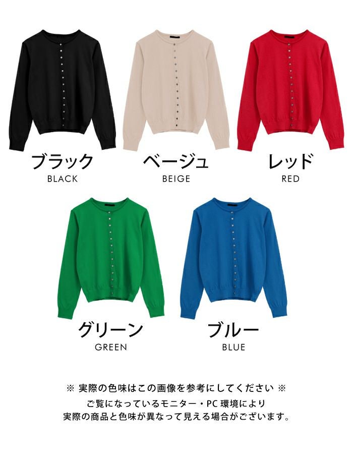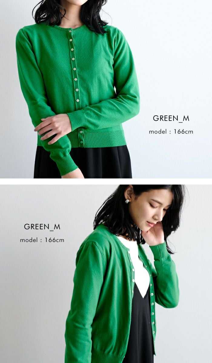 フロントのドットボタンデザインが今年らしいニットカーディガン。 クルーネックのデザインが顔周りをすっきりと見せてくれます。 チクチクしない肌触りと、ストレスを感じさせない伸縮性も◎ 重ね着もしやすい厚みなので、ロングシーズンお使いいただけます。 シンプルで着回しやすい、デイリーユースに活躍するアイテムです。