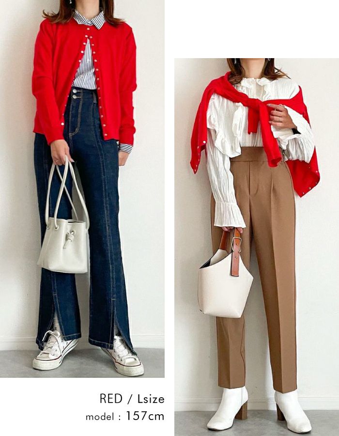 • どんなボトムスとも好相性のアイテム♪ドットボタンニットカーディガン