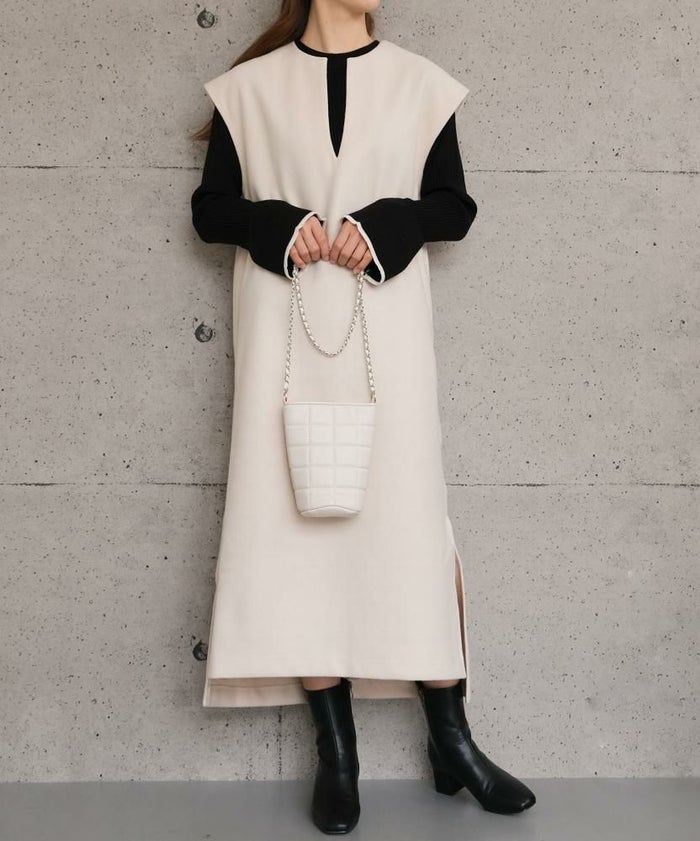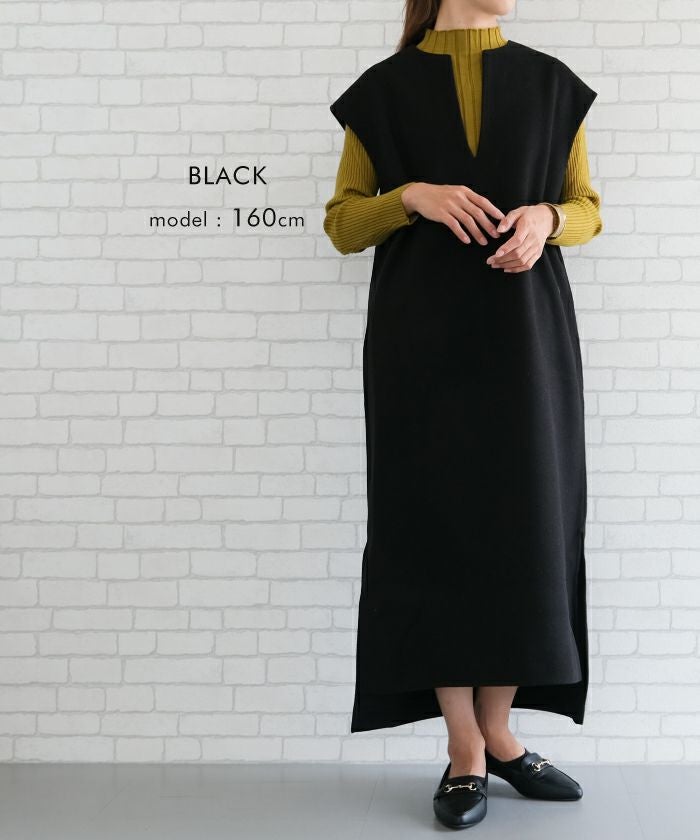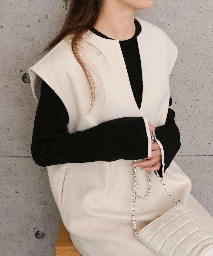 写真を見るたびずっといいなと思っていたのですが、今回ようやく購入しました。胸元のキーネックと裾のスリットが大人っぽいので仕事でも着られるし、胸元が大きく開いてなく、肩周りも隠れているのでベストを着ているようなオシャレ感と暖かさが気に入っています。