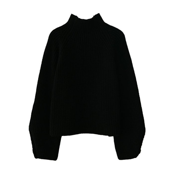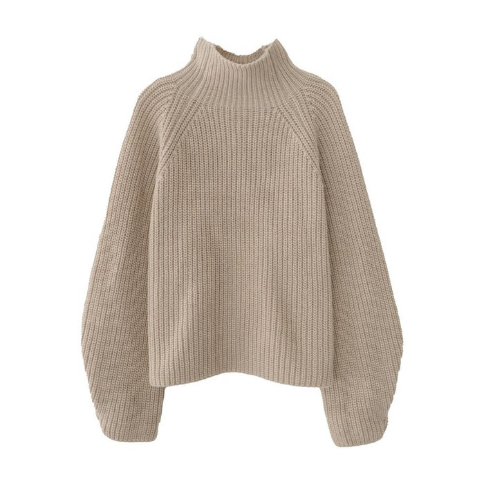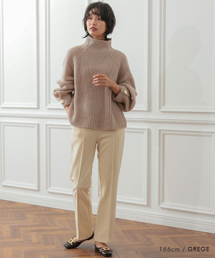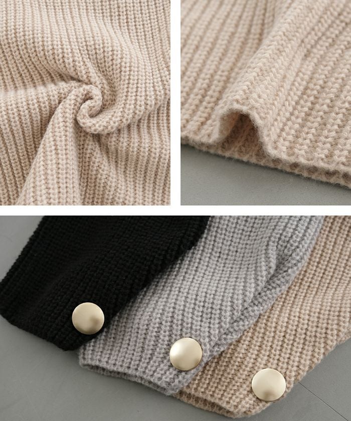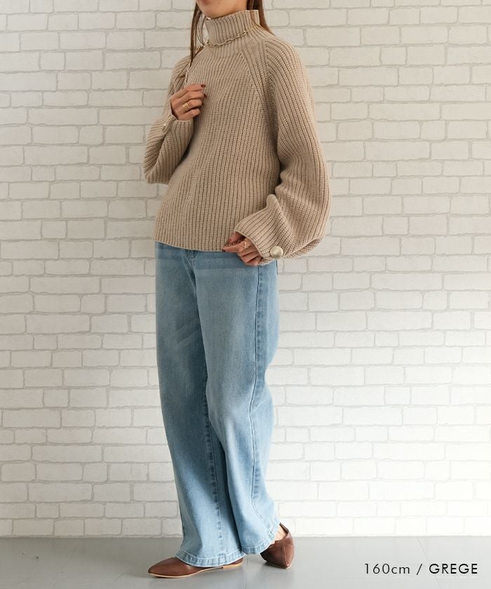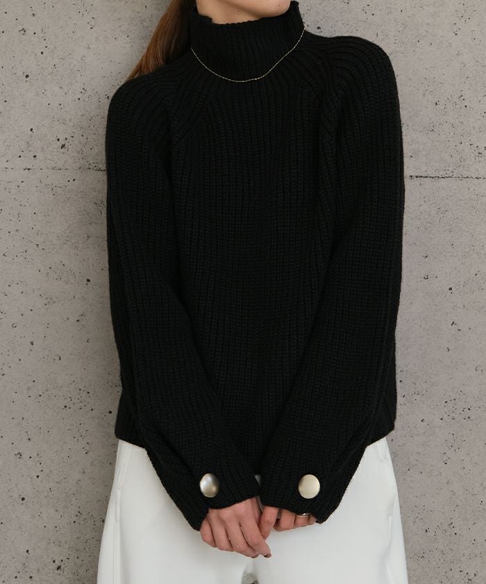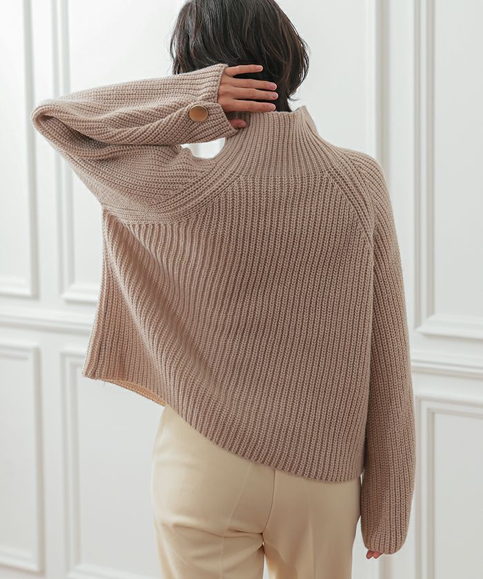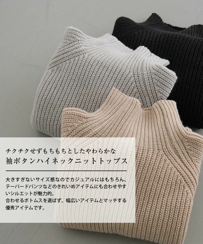 • チクチクせずもちもちとしたやわらかな袖ボタンハイネックニットトップス