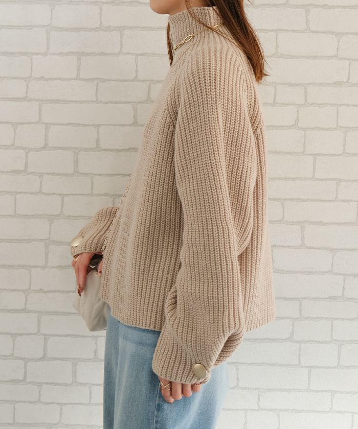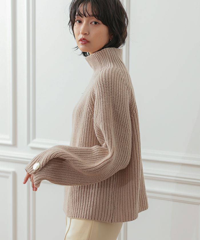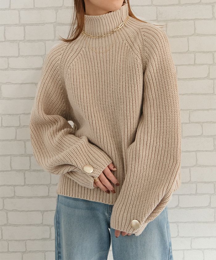 袖ボタンハイネックニットトップス レディース 秋 冬 | アクアガレージ aquagarage