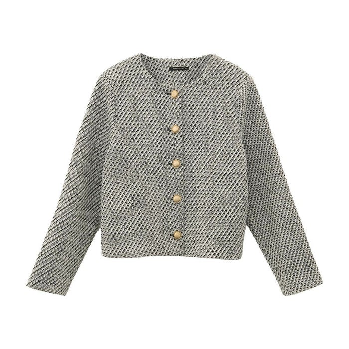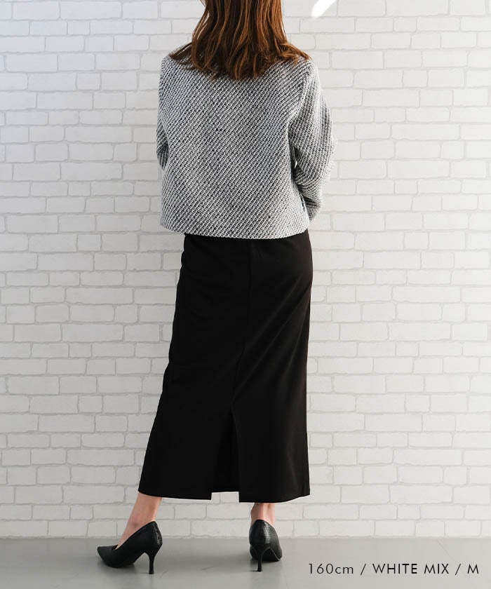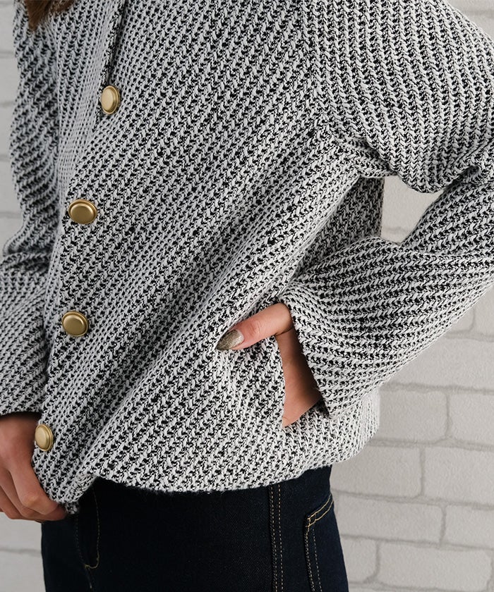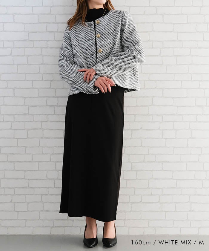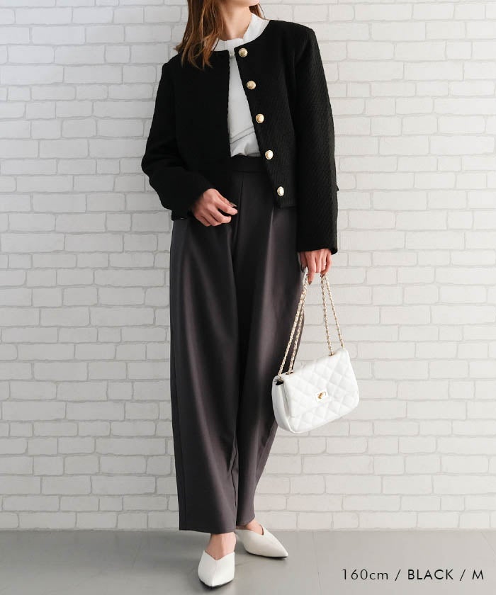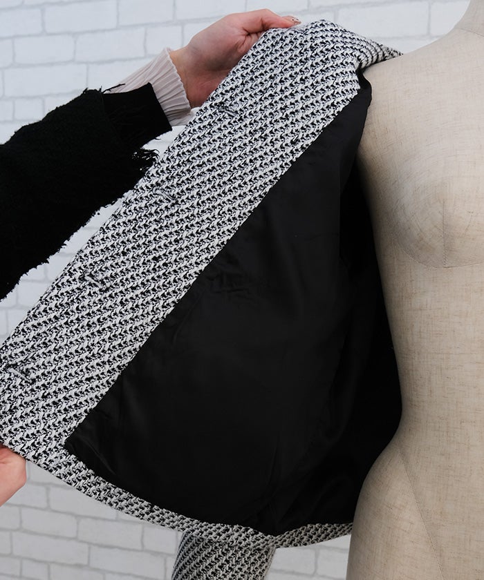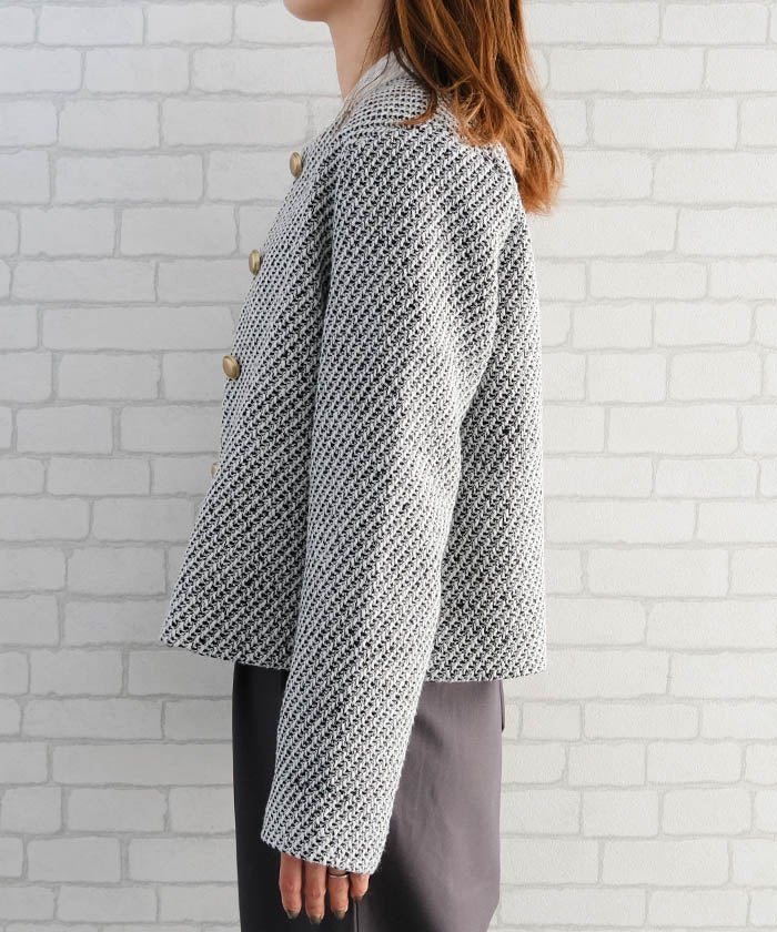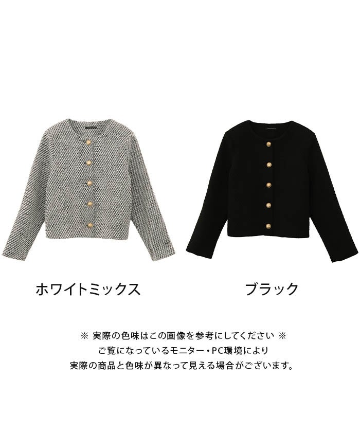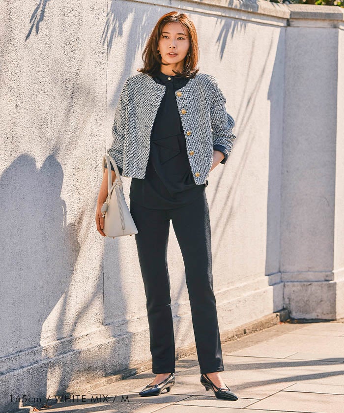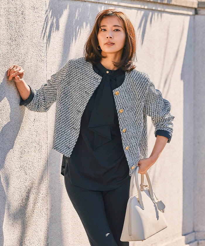 • シックな風合いが魅力のノーカラーツイードジャケット