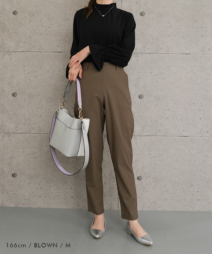 シンプルなデザインのため、様々なトップスと相性が良く、カジュアルからオフィススタイルまで幅広く活躍します。