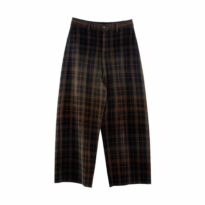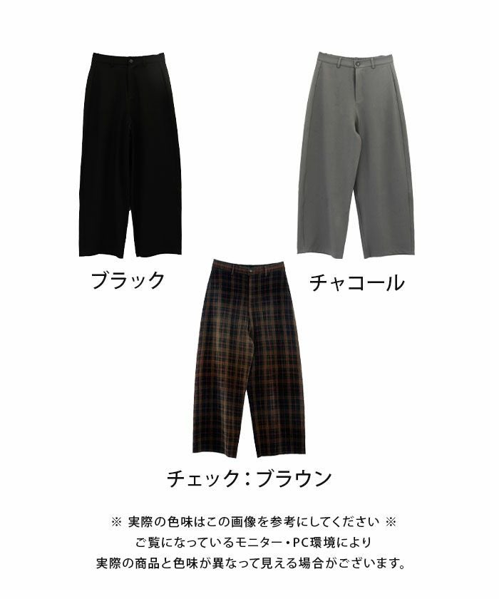チェックの色が落ち着いているのでトップスが柄でも合わせやすいが高身長の方にはおすすめできない(T_T)足首モロ見えになります笑