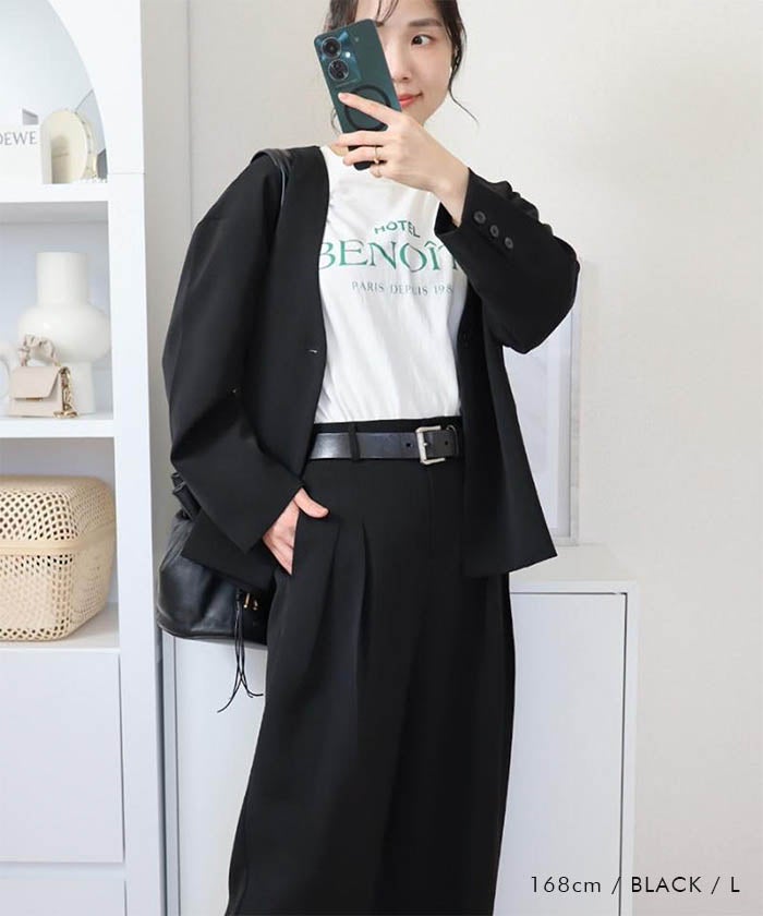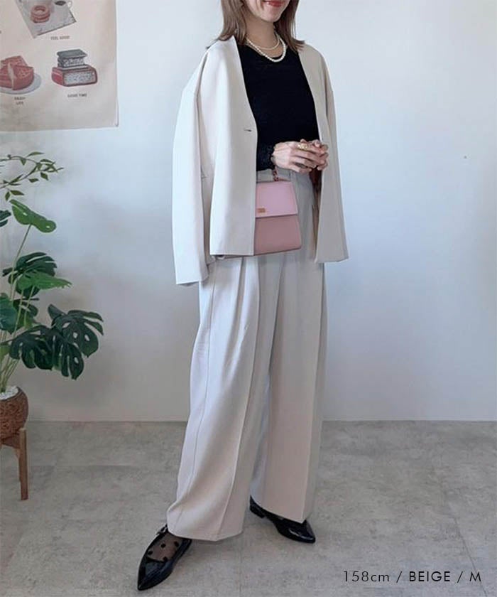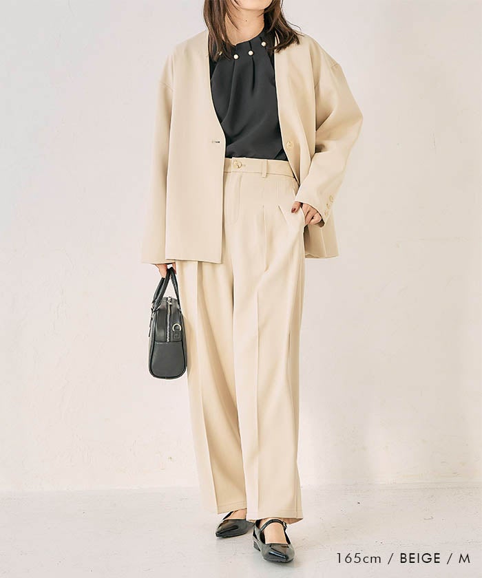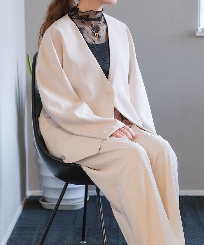 上下セットで着用すれば、統一感のある洗練されたスタイルが即完成。