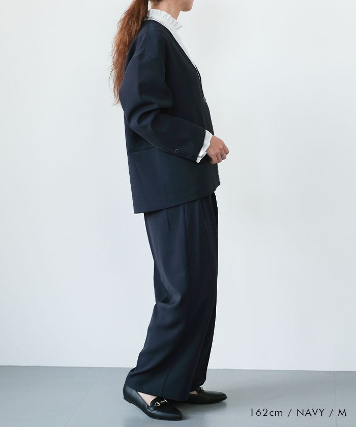 セットアップとして着用すれば、フラットシューズやサンダルを合わせるだけで大人のリラックスコーデが完成。