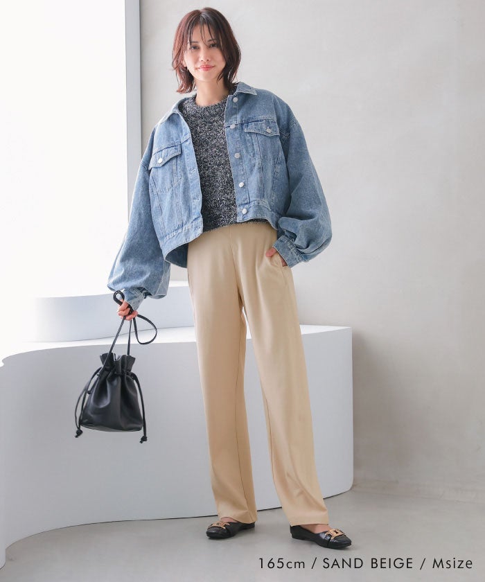 サイドの切り替えラインをやや前側にすることで「細見えシルエット」に。