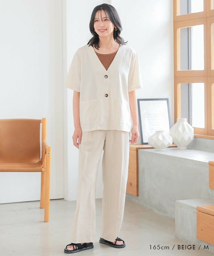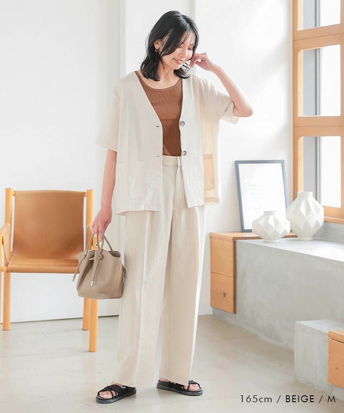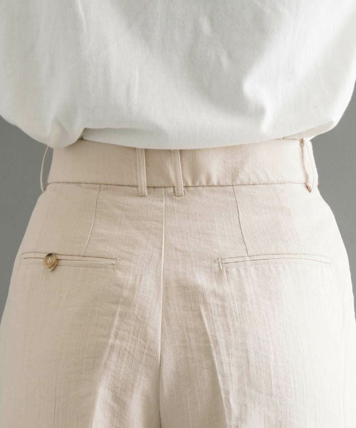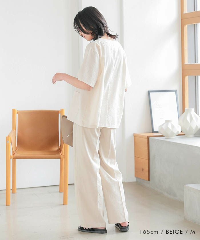 ナチュラルな風合いとスラブ生地を使用しシワを気にする事なく着用していただけます。