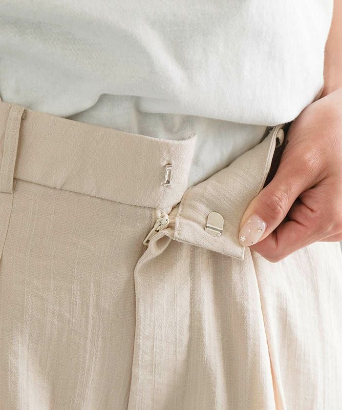 フロントに施されたタックが立体感を出し、動きに合わせて優雅に揺れるシルエットが魅力。