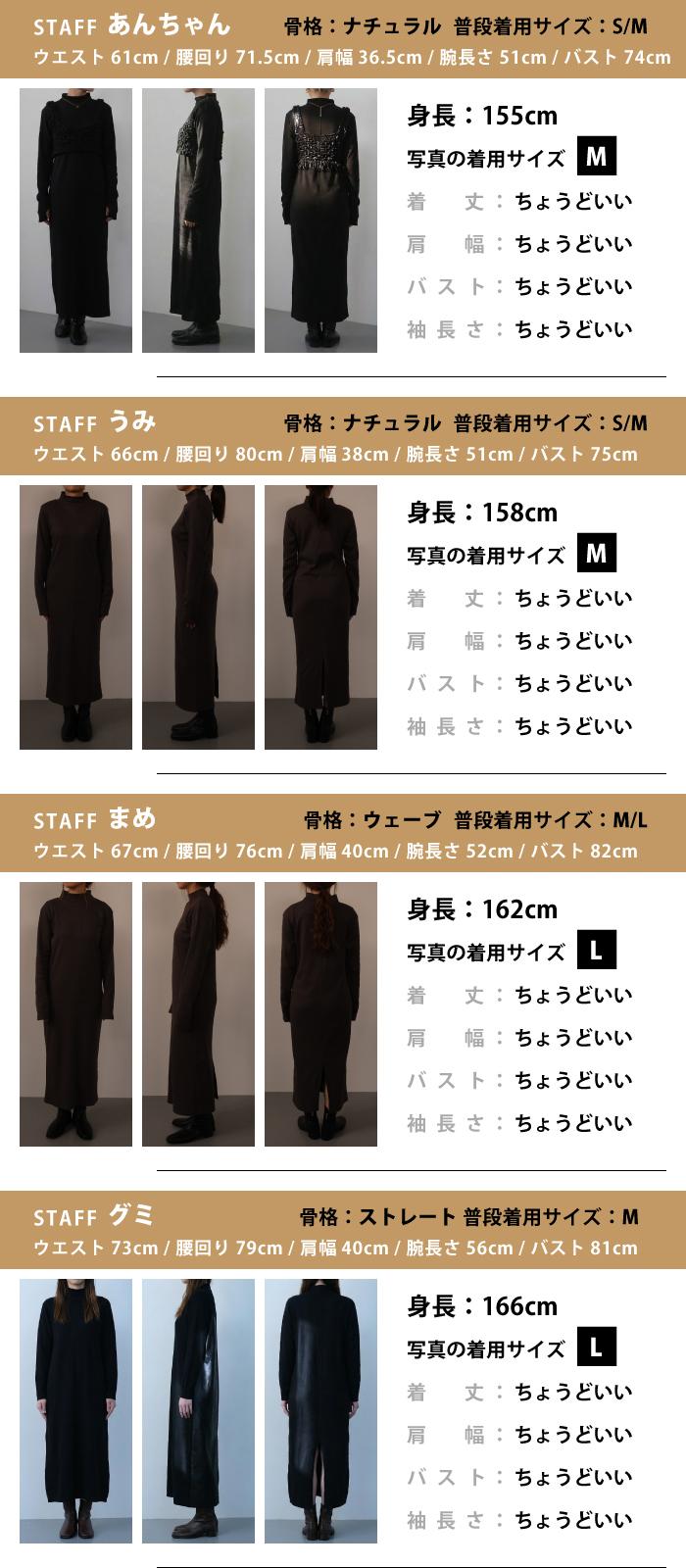 ショート丈のジャケットやカーディガンとの相性もよく、シルエットの縦ラインを活かしたままバランスよくスタイリング可能。
