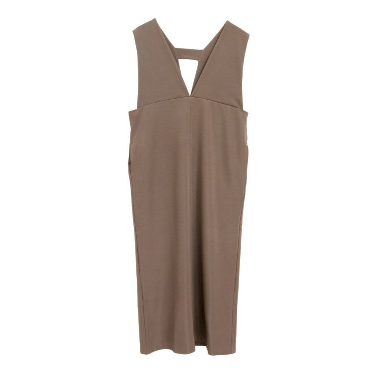• Iラインのシルエットで細見え効果◎リブポンチVネックジャンスカ