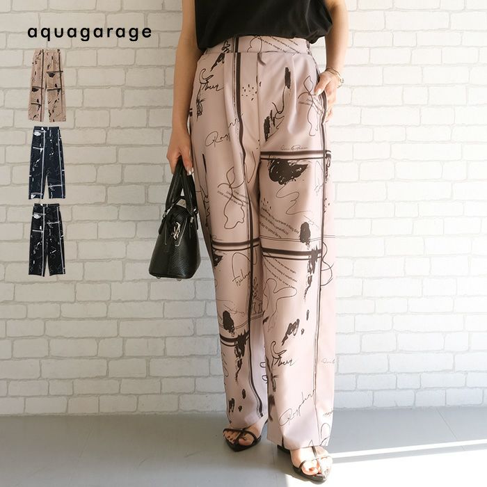 送料無料 セットアップ可 英字柄ワイドパンツ レディース 春 夏 秋 M ≪ゆうメール便配送30・代引不可≫ |アクアガレージ aquagarage