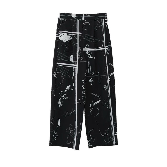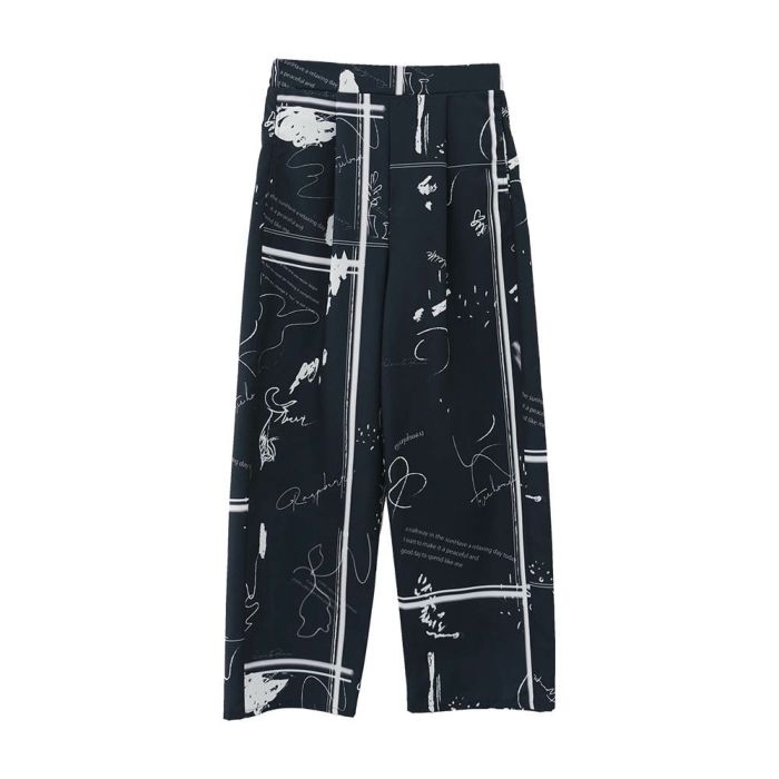 手書き風の英字柄が特徴的なワイドパンツ。