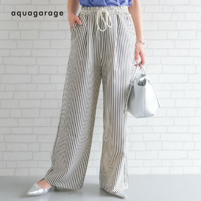送料無料 ストライプイージーパンツ 春 夏 秋 M ≪ゆうメール便配送30・代引不可≫ |アクアガレージ aquagarage