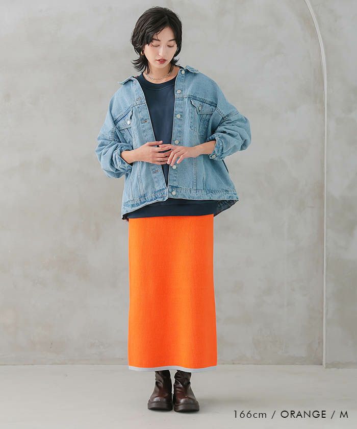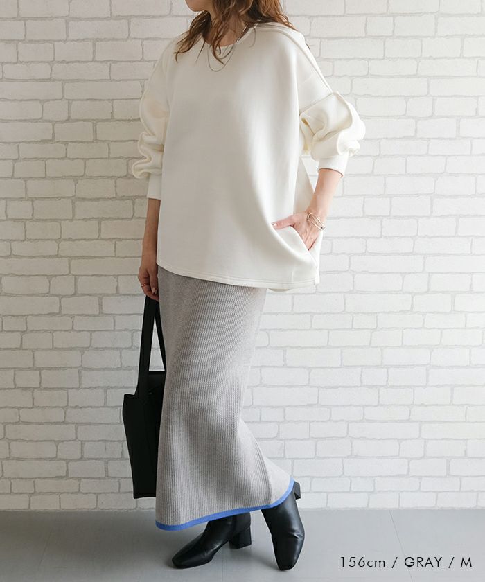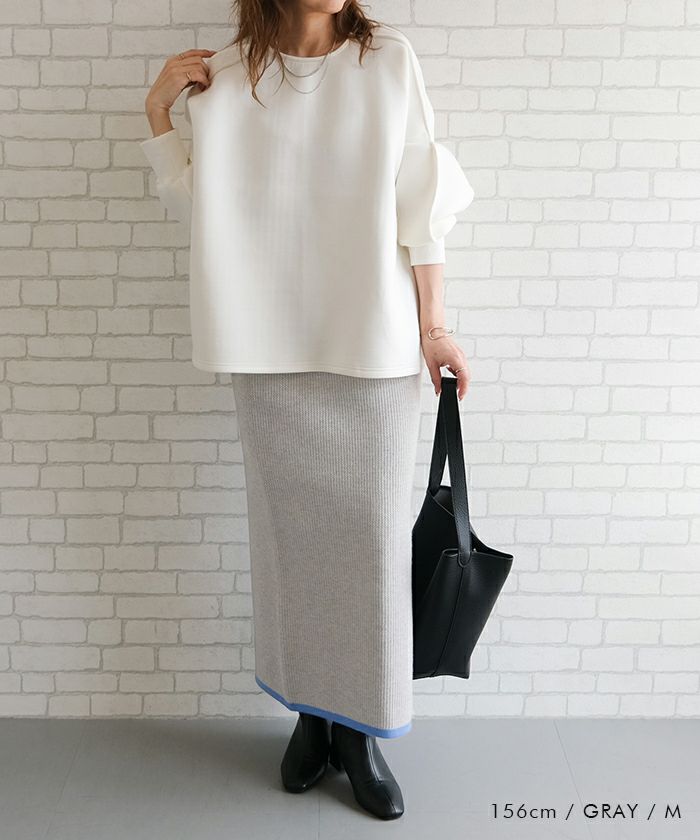 裾バイカラーリブニット裏起毛ナロースカート レディース 秋 冬 | アクアガレージ aquagarage