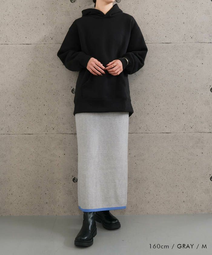 • 裾のスリットデザインで足さばきも◎バイカラーリブニット裏起毛ナロースカート